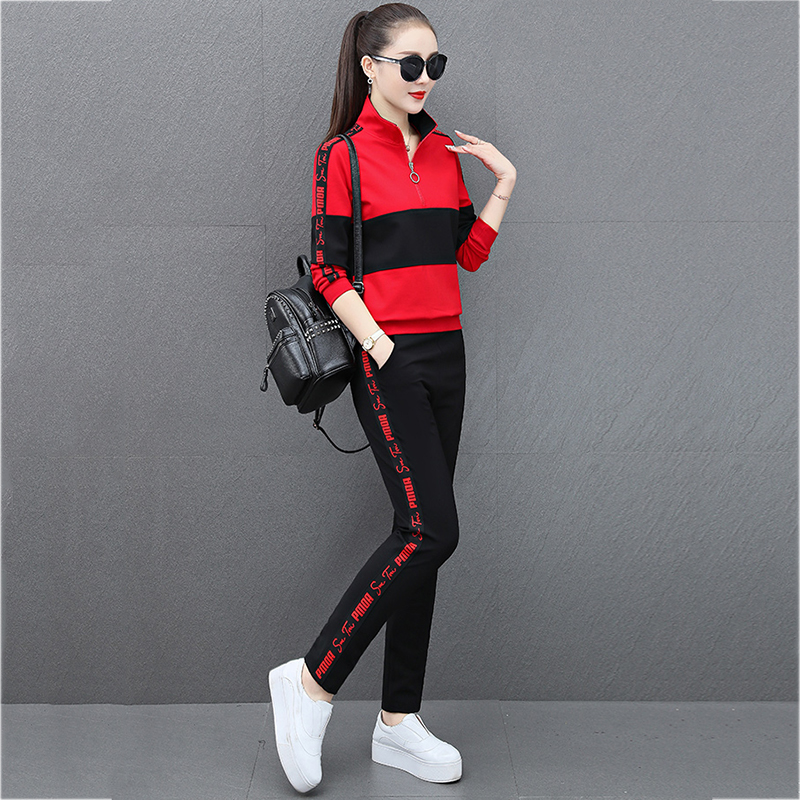 Mousseni brand sports suit women 2022 spring autumn new big size slim loose and loose foreign casual wear two sets