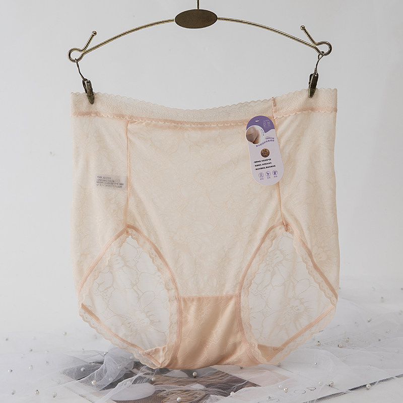 Full 2 pieces of Deanfun Lady's boxer underwear seamless lace high waist mesh middle-aged sexy
