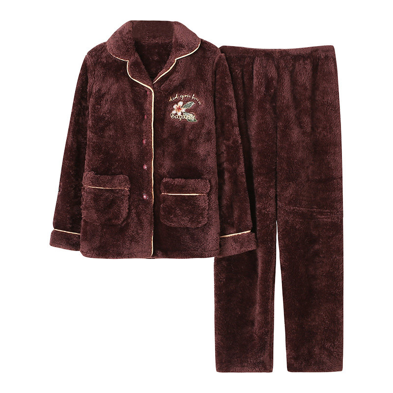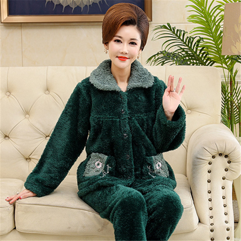 Middle Aged Mother Coral Suede Pyjamas Woman Autumn Winter Thickened Garnter Wool Flannel Winter Warm Home Clothing