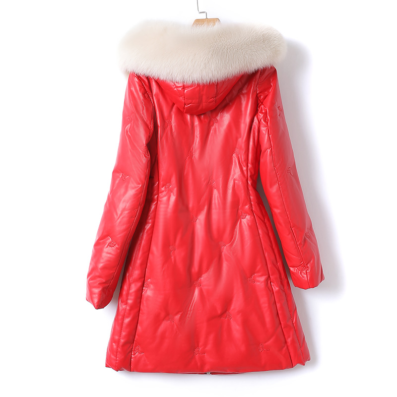 Leather Clothing down jacket Supper with hat foodie fur collar leather clothes lady Anti season 2022 new white duck suede sheep leather