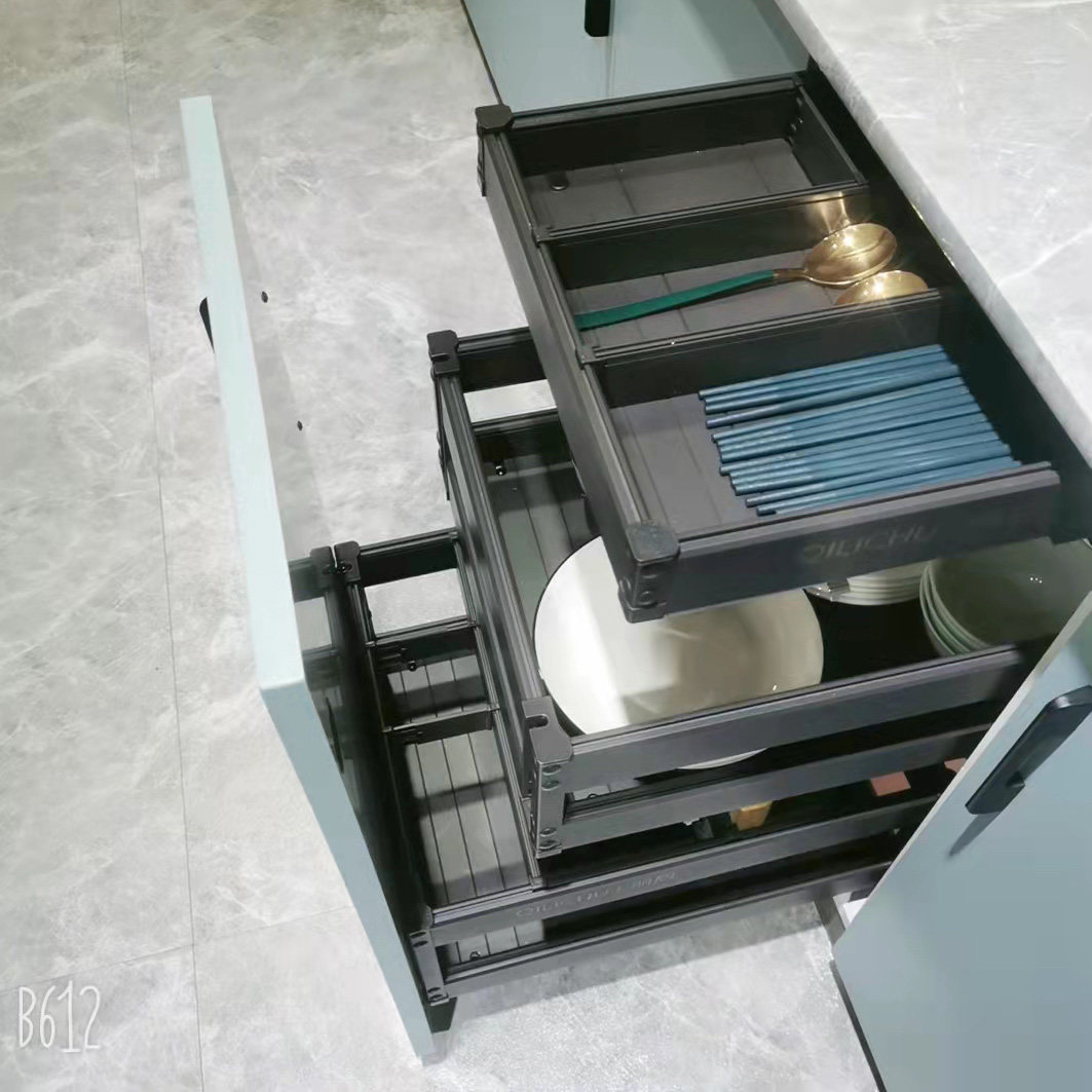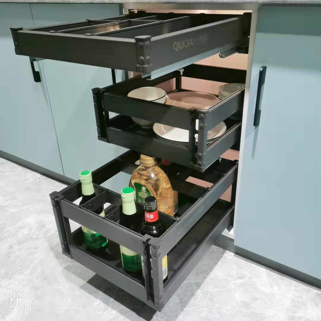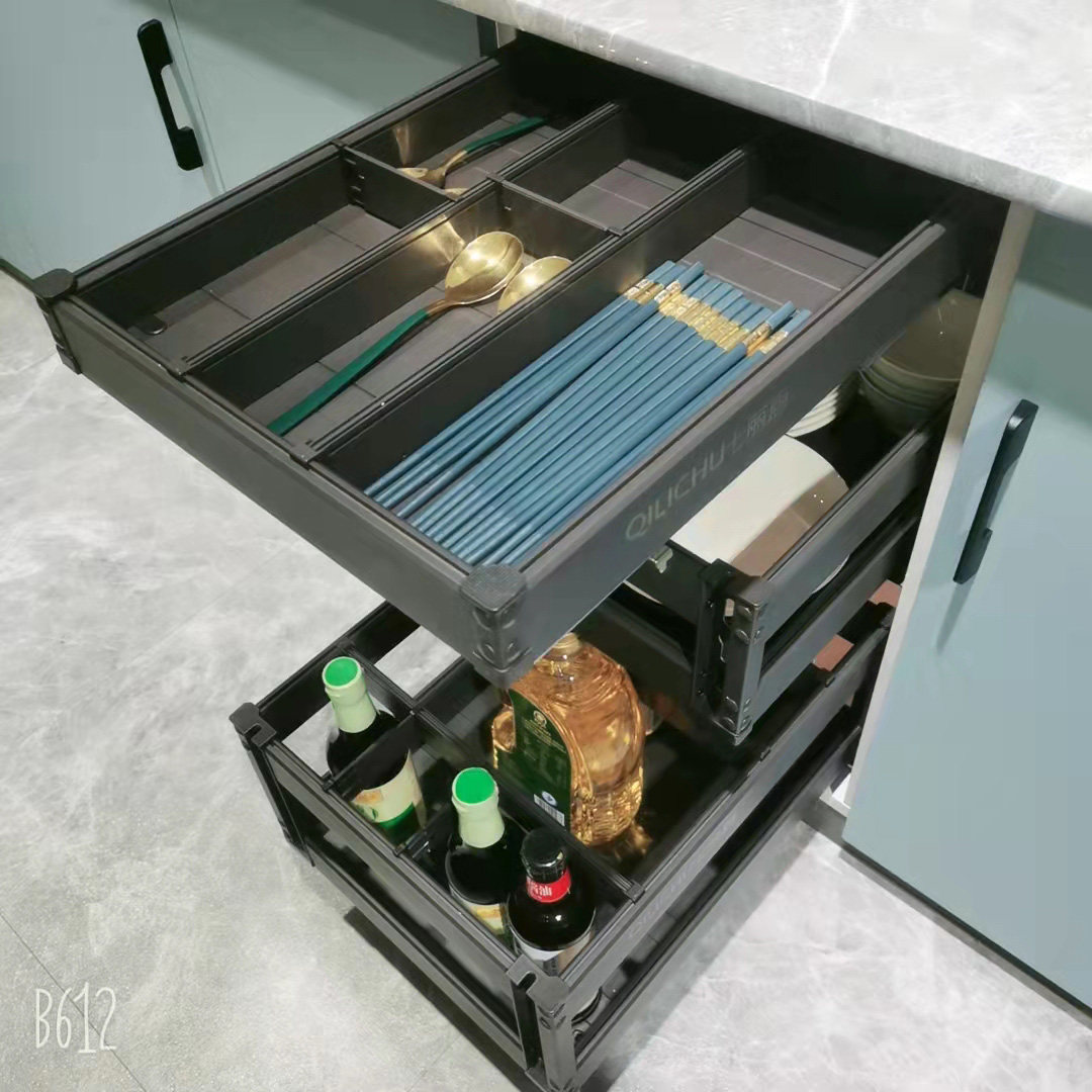 New seasoning pull basket overall cabinet black aluminum alloy seasoning basket oil bottle shelve drawer type tool drawing knife fork box