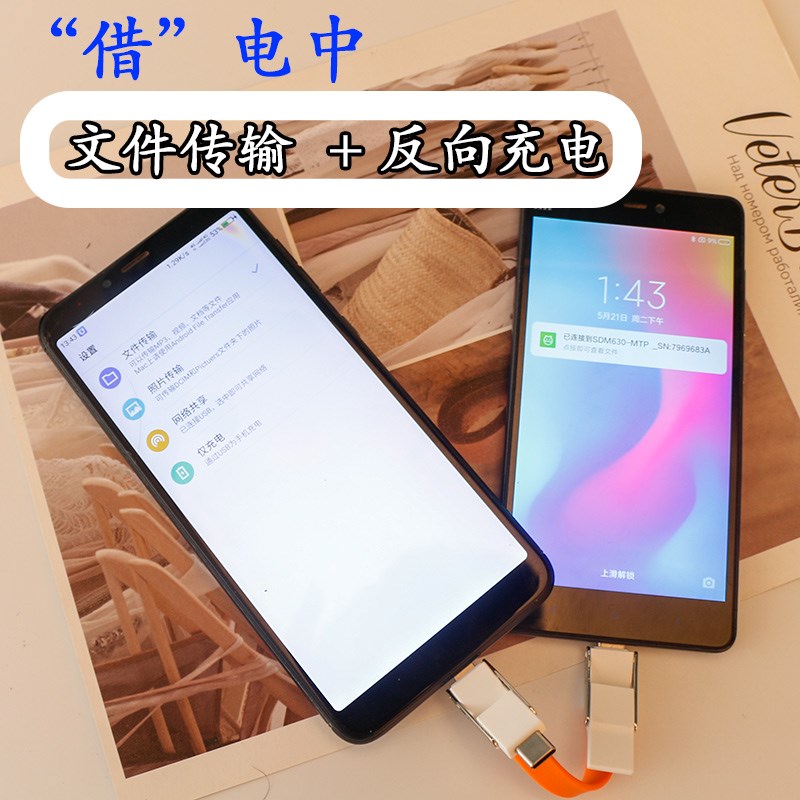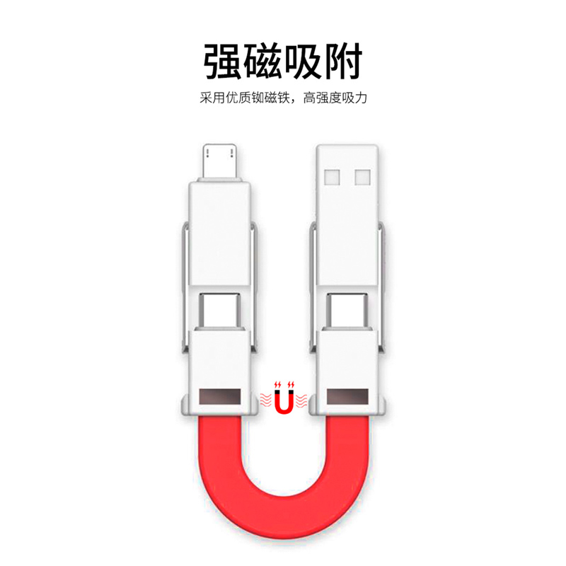 Portable mini keychain data cable OTG magnetic fast charging cable suitable for Apple Android Huawei notebook six-in-one portable double-head Type-c mobile phone flash charging storage short charging cable