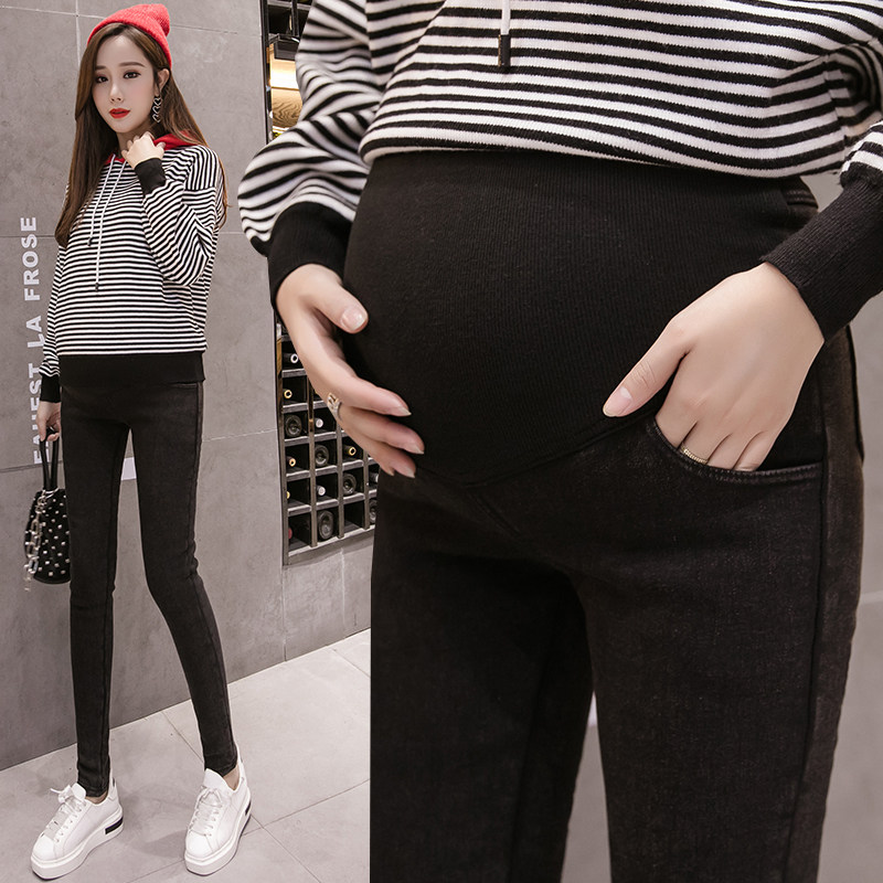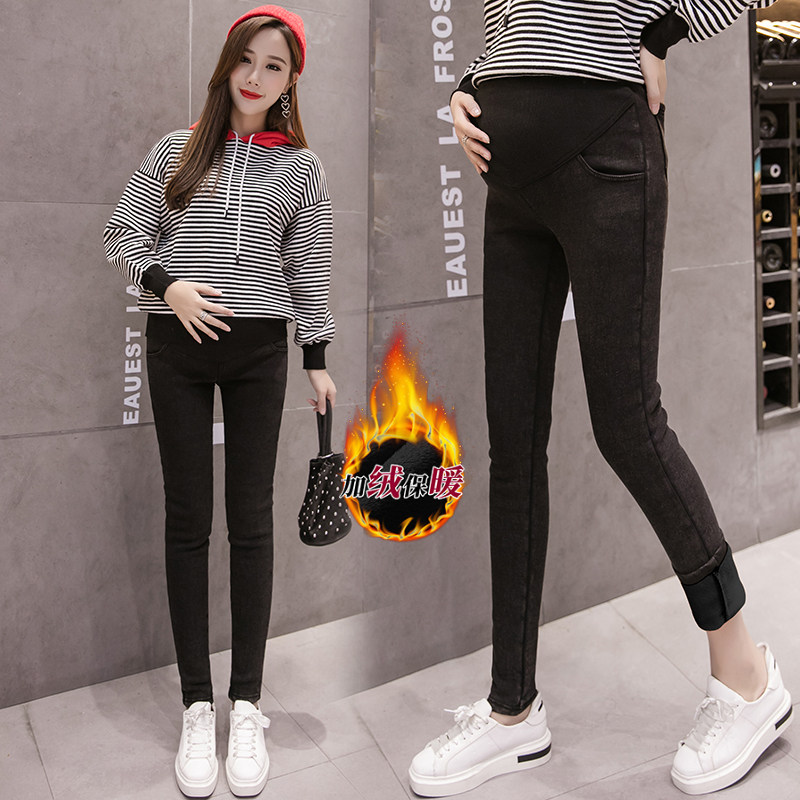 Maternity pants Spring and autumn long pants thin velvet belly pants tide mom jeans women autumn and winter wear plus fleece fashion style outside