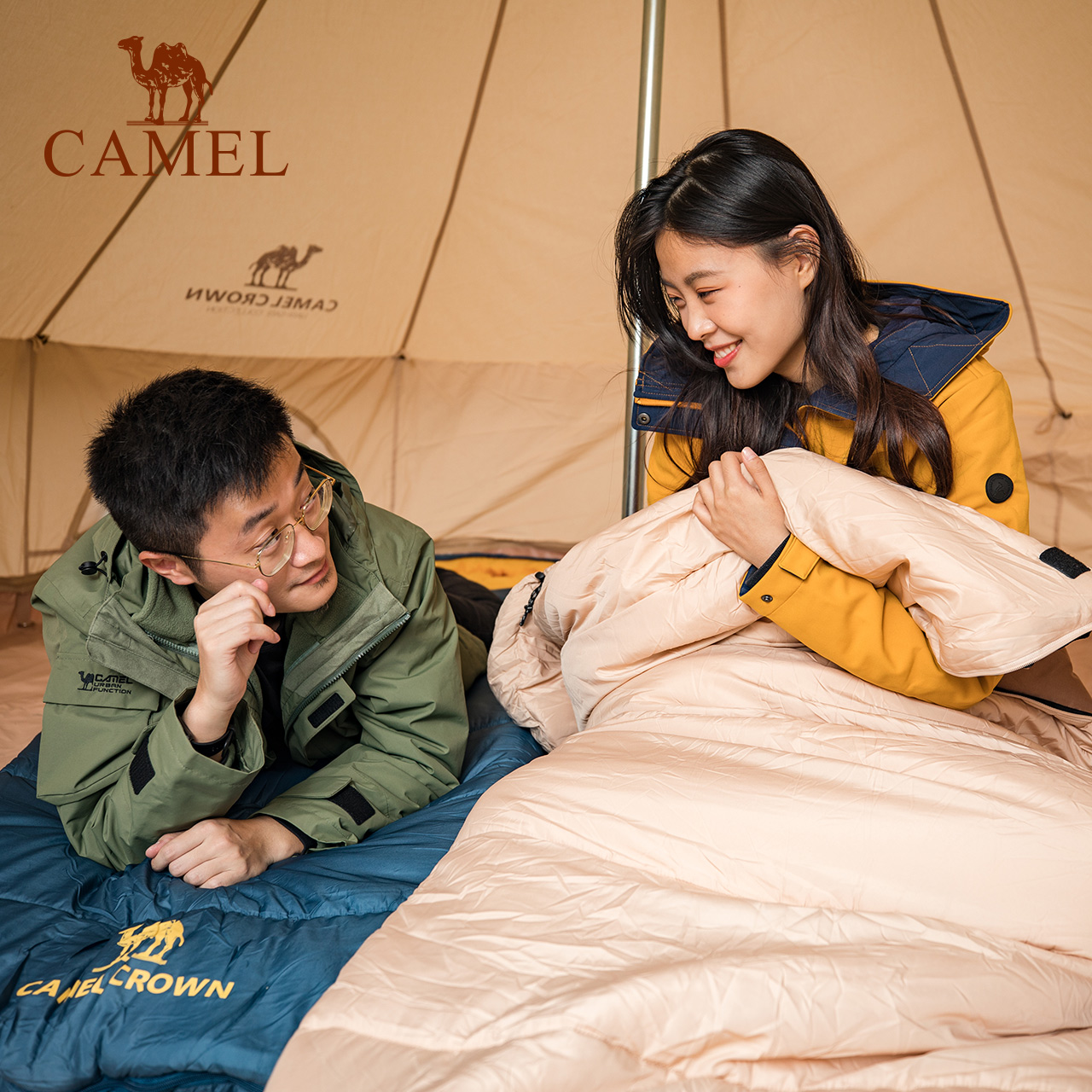 Camel outdoor sleeping bag adult camping travel warm spring thickened cold-proof adult dirty down envelope sleeping bag