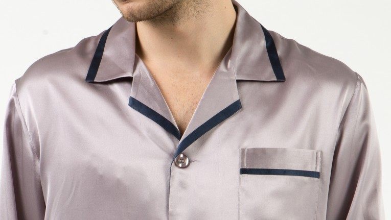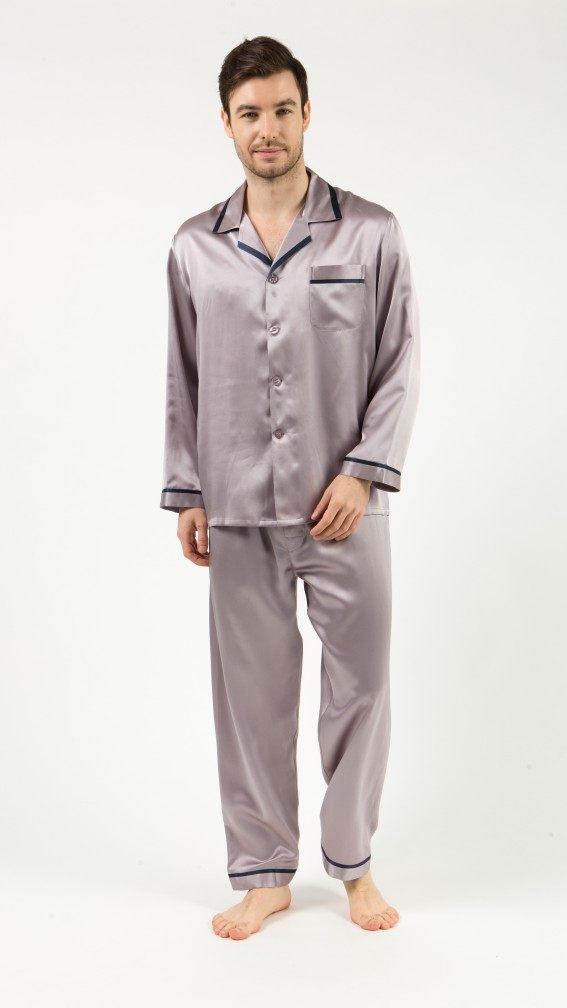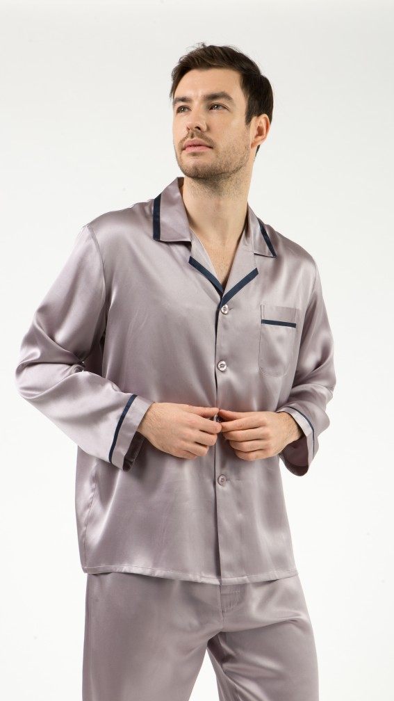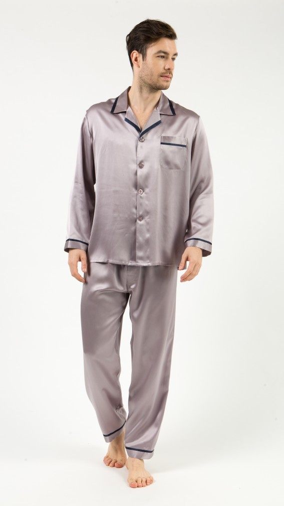 Suzhou silk silk pajamas men's solid color long-sleeved comfortable two-piece silk home service suit spring and autumn