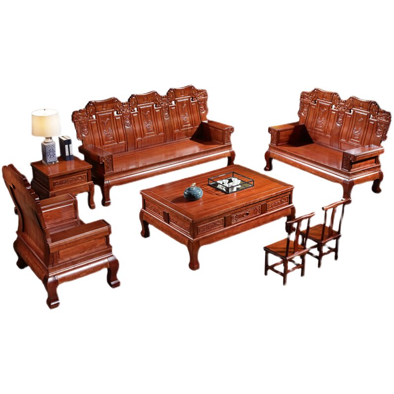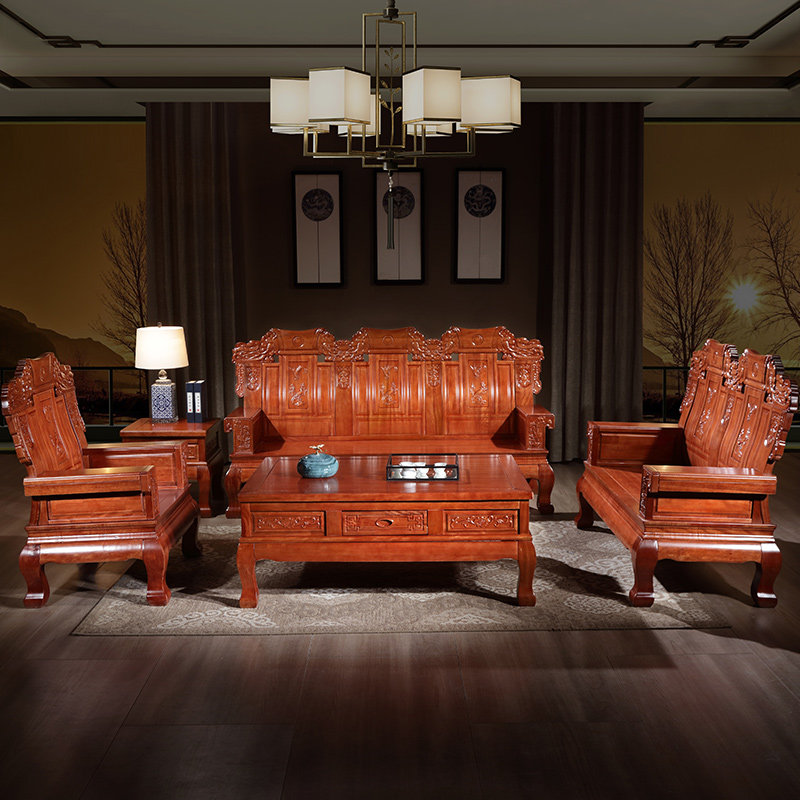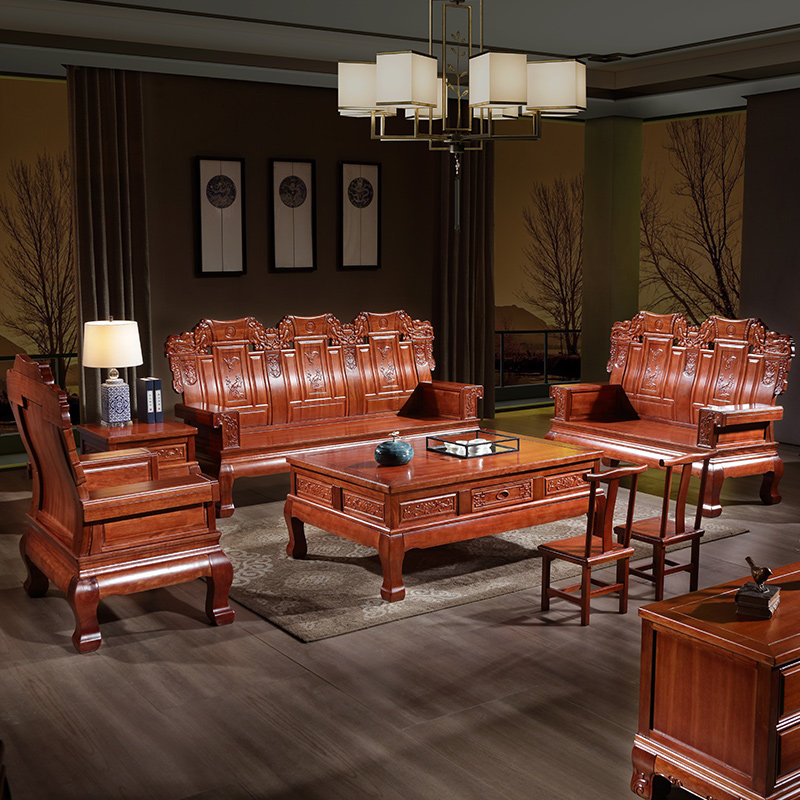 Golden rosewood sofa solid wood living room furniture combination Chinese style imitation classical villa hotel mahogany sofa all solid wood