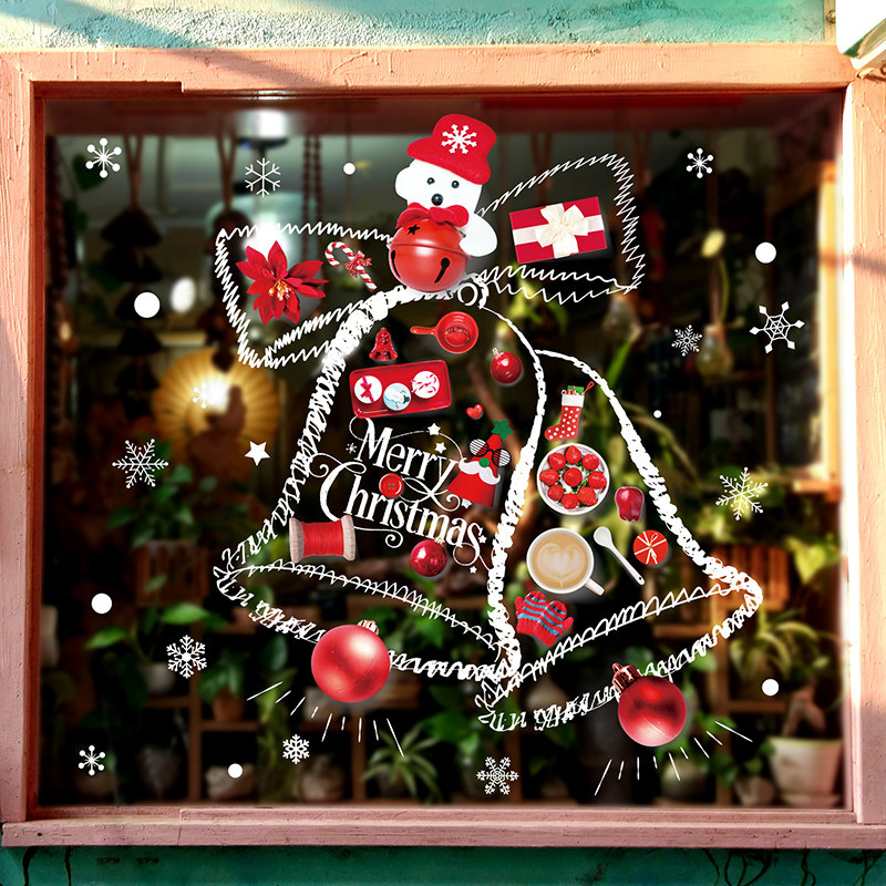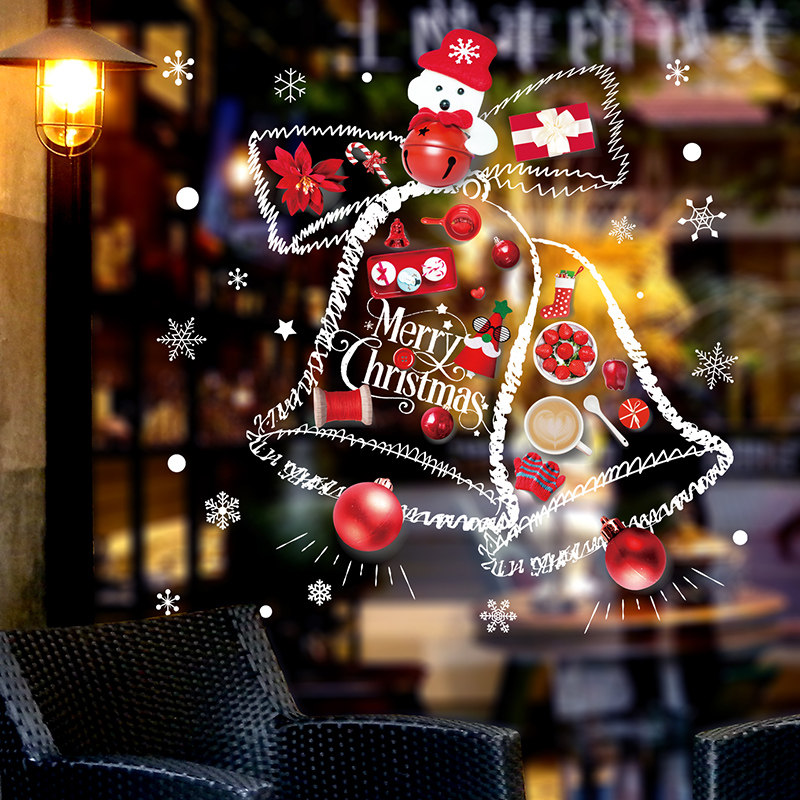 Christmas Decorations Children's Kindergarten Mall Storefront Festive Atmosphere Glass Shop Windows Sticker Bell Sticker Arrangement