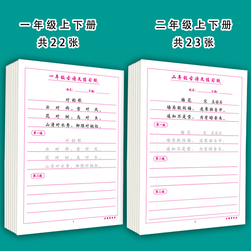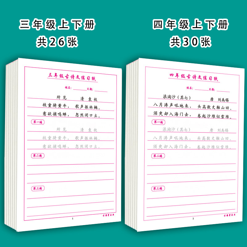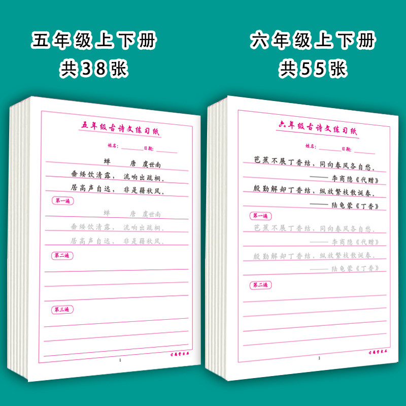 Ancient poetry proverb famous famous copying paper 1 - 6 grade language text synchronization of the booklet teaching synchronous hard pen calligraphy practice paper