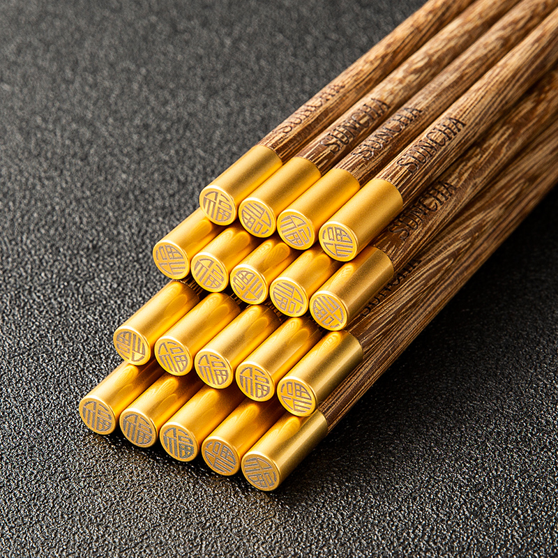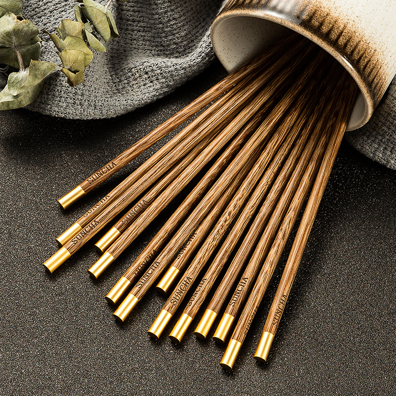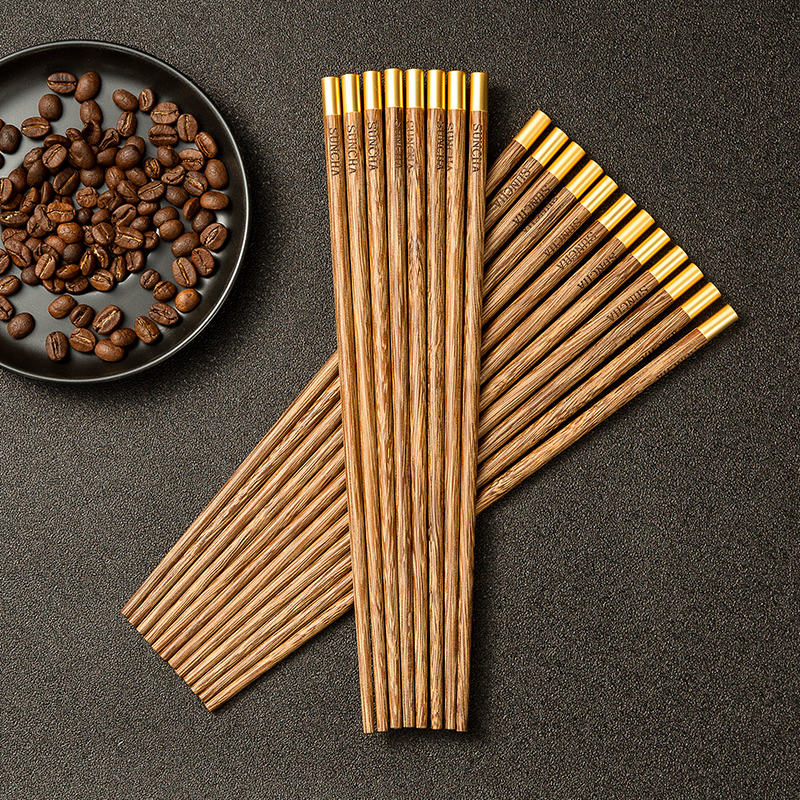 Double-gun chicken wings wooden chopsticks household household 2021 new anti-slip anti-mildew high-end light luxury style long chopsticks for commercial use 10 pairs
