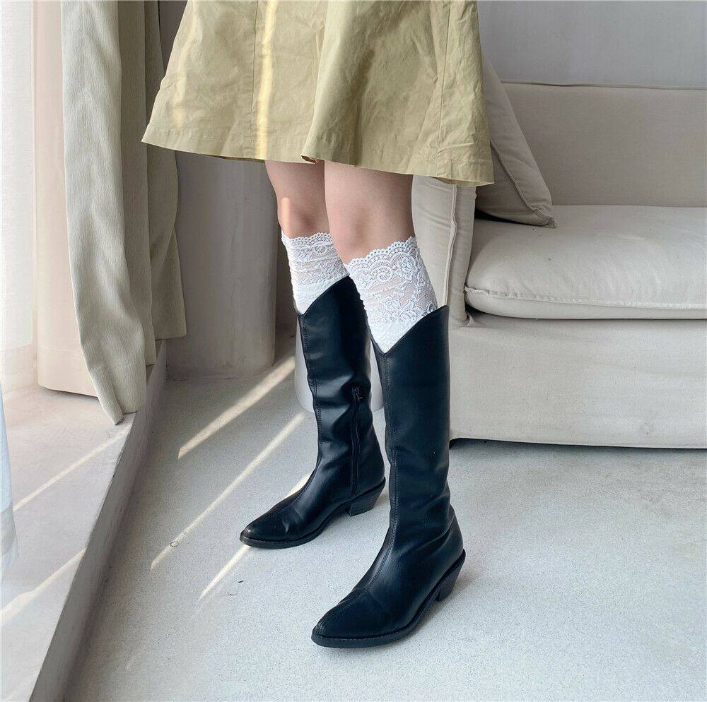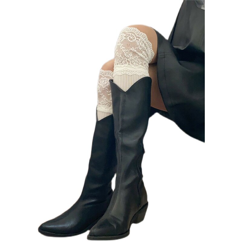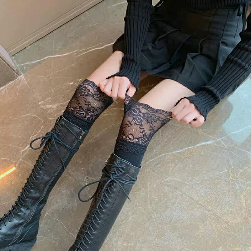 Net red with the same lace mid-tube big lace over-the-knee boots socks bubble socks cotton mid-tube socks trendy women