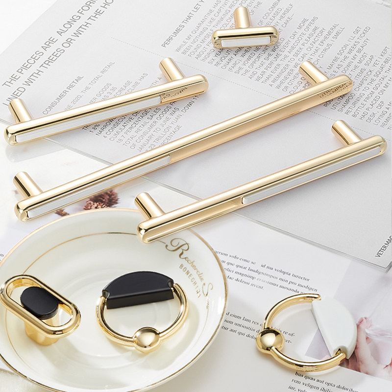 Light luxury golden cabinet door handle modern minimalist white black single-hole Nordic drawer overall cabinet wardrobe door handle