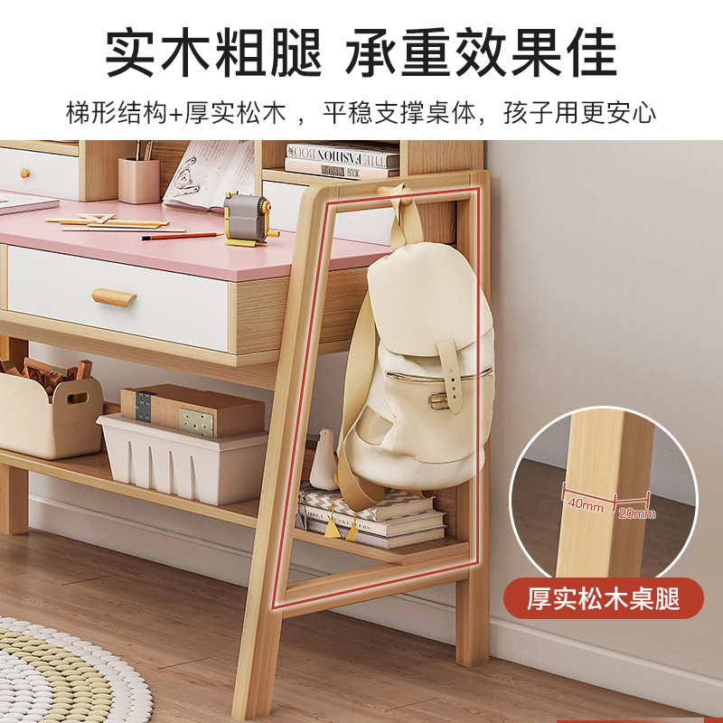 Children's study table solid wood legs desk bookshelf combination home primary school students desk boys and girls bedroom work table