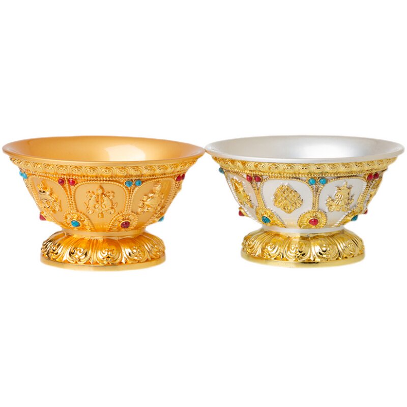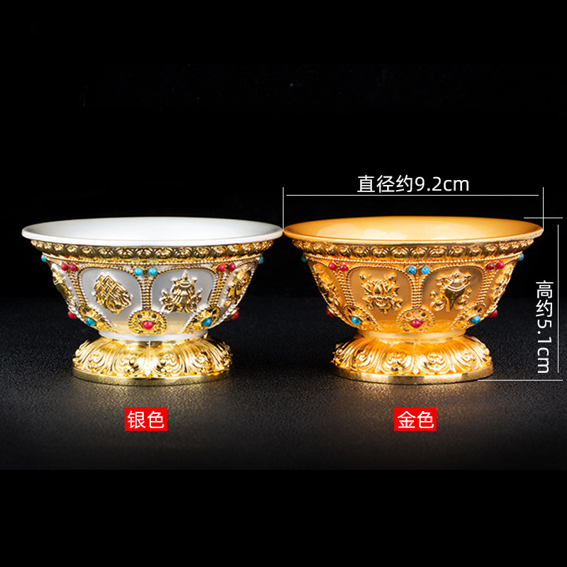 Water supply cup in front of Buddha for Buddha gold inlaid gem alloy eight auspicious seven water supply bowls eight for holy water cup ornaments