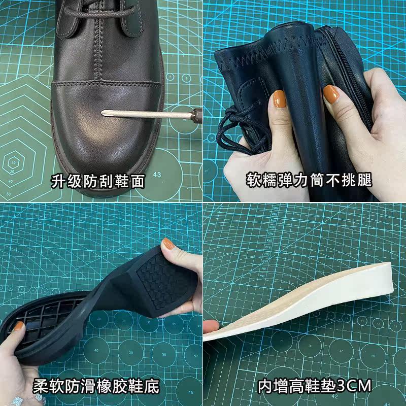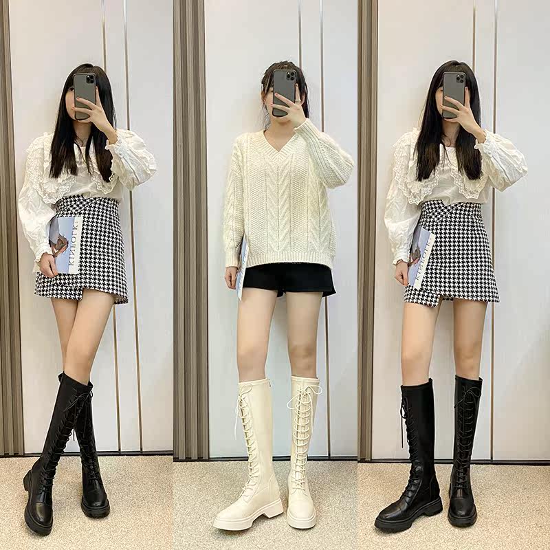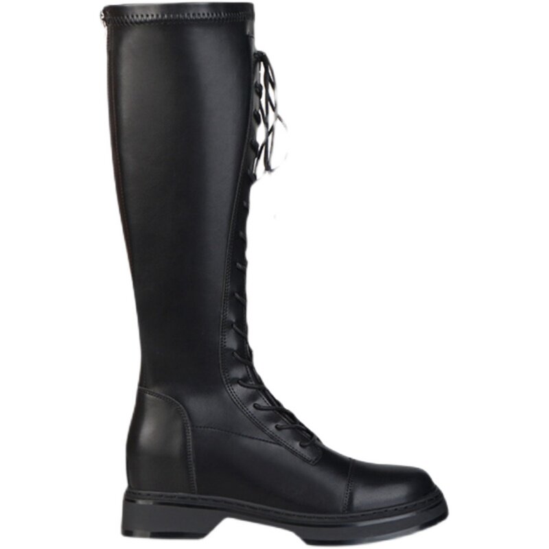 Women's long boots with thick legs, small but knees, winter plus velvet inner heightened leather high boots, large tube circumference knight boots women
