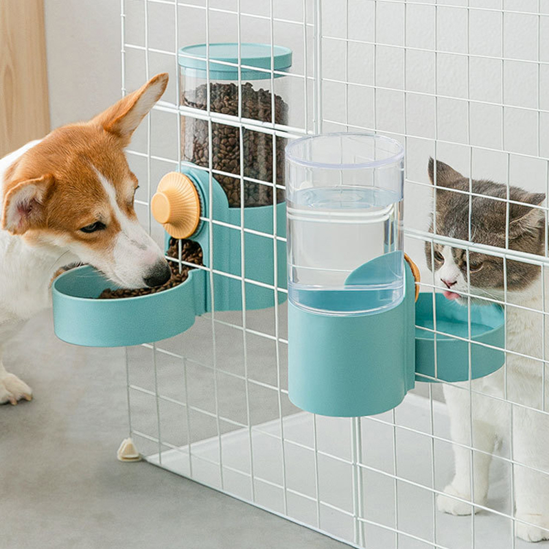 Pet Automatic Feeding Machine Cat Food Dog Food Cage Suspended Drinker Kitty Automatic Drinking Water Pitcher Suit