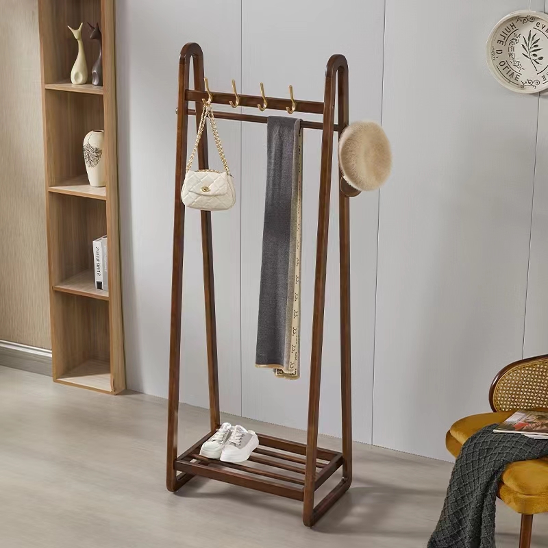 Solid wood coat rack floor bedroom hanger new Chinese style light luxury floor clothes rack multifunctional vertical hanger
