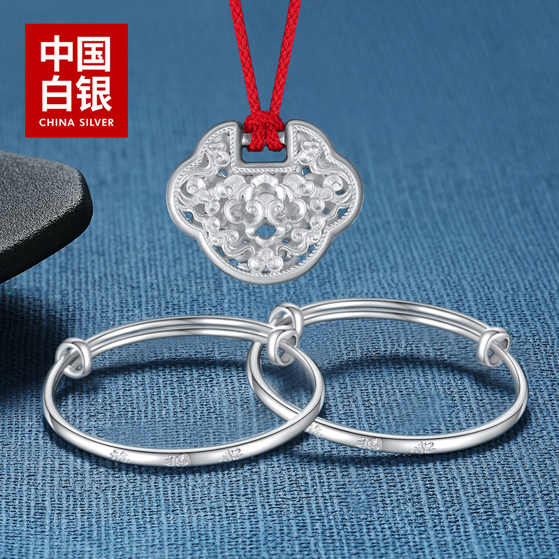 Foot silver 999 clever and clever lock bag suit foot silver 999 fu character pair of bracelet foot silver 999 Xiangyun lock bag foot silver 999 Xiangyun baby suit foot silver 999 tiger year Ruyi baby lock foot