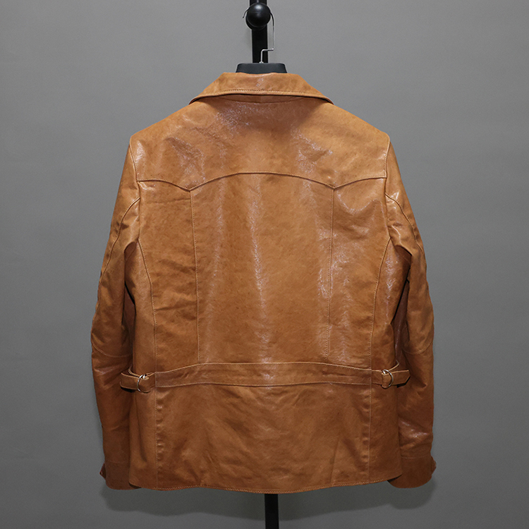 Lightweight and soft brown sparrow point vegetable tanned top layer sheep leather leather jacket men's slim short lapel jacket casual jacket Xue