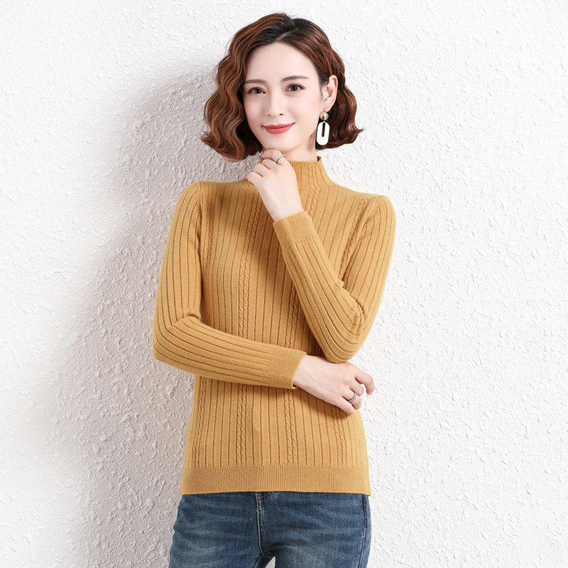 Bottom Sheep Sweatshirt Woman 2021 Autumn Winter New Half High Collar Inner Lap Stripe Manhood Knit Sweaters