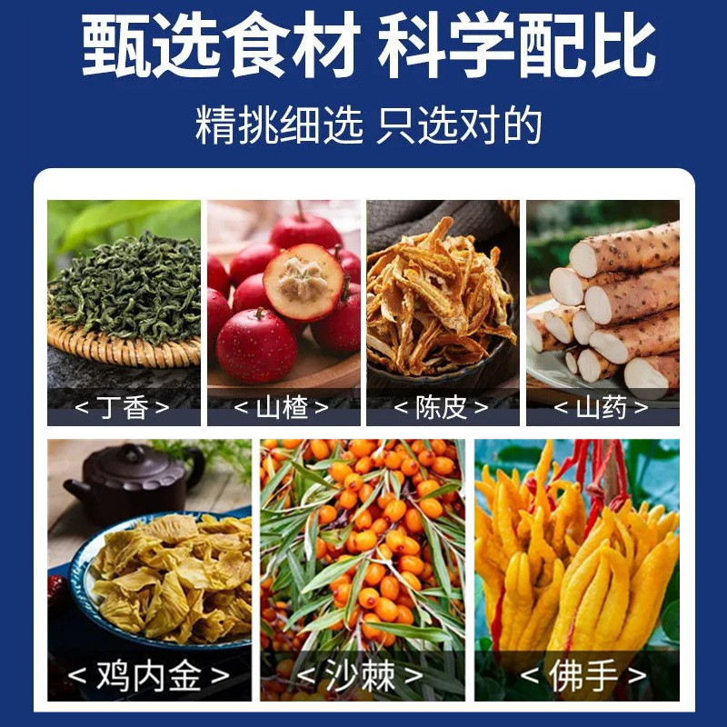 Edible glucose clove (10%) Fool hands (10%) Buckthorn (10%) Hawthorn Chicken Inner Golden Malt (fried) Yam Dried Orange Peel (orange peel) Magnesium stearate