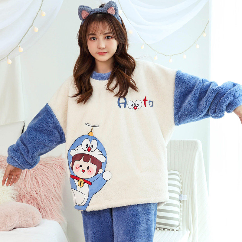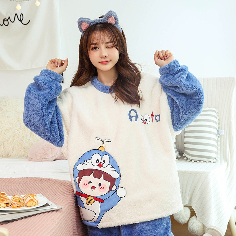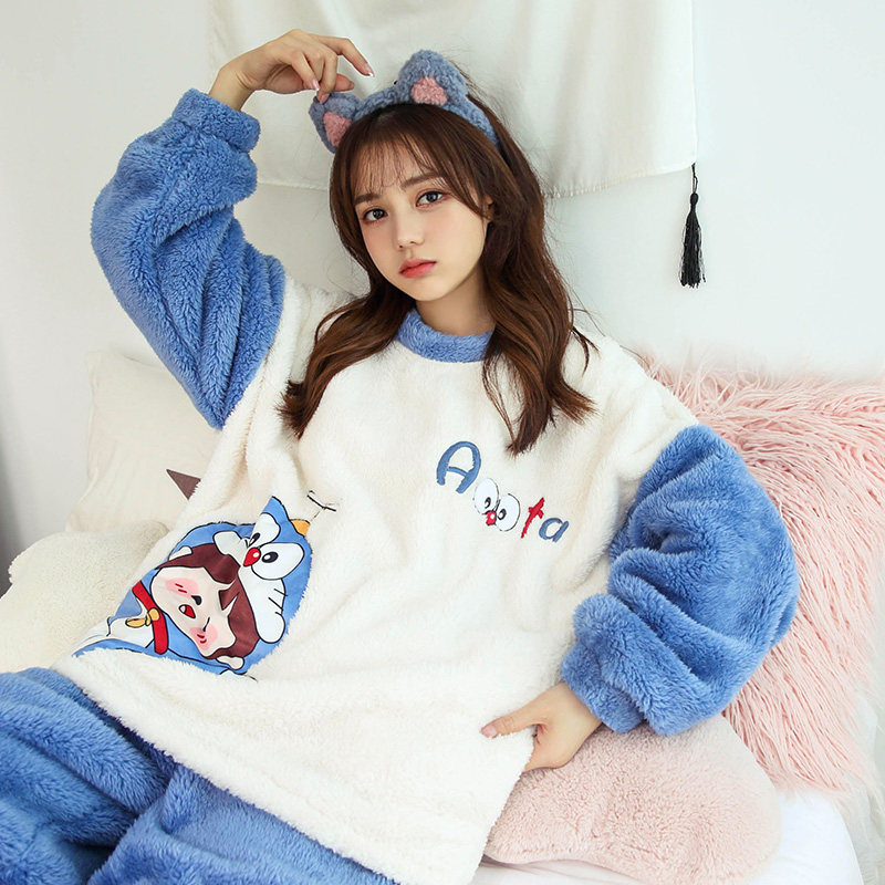 Coral Suede Thicken Plus Suede Cute Cartoon Large Size Pyjamas Woman Autumn Winter Flannel 2021 New Home Clothing