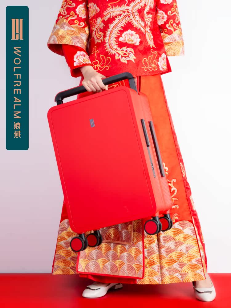 Wolf Domain 2022 Spring Summer New Wide Pull-Lever Box Wedding Escort Suitcases Red Crate Wedding Dowry Suitcase