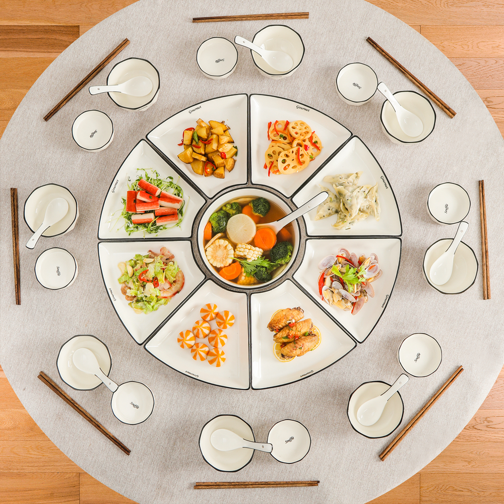 Reunion platter tableware combination New Year ceramic plate plate home creative family hot pot party set plate set