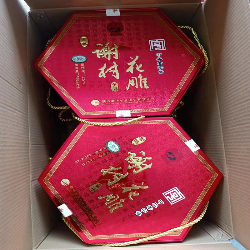 Shaanxi Ocean County Special Production Xie Village Yellow Wine New Pint Box Xie Village Flower Carved Yellow Wine 12 Degrees 200mlx6 Bottle