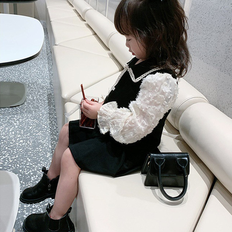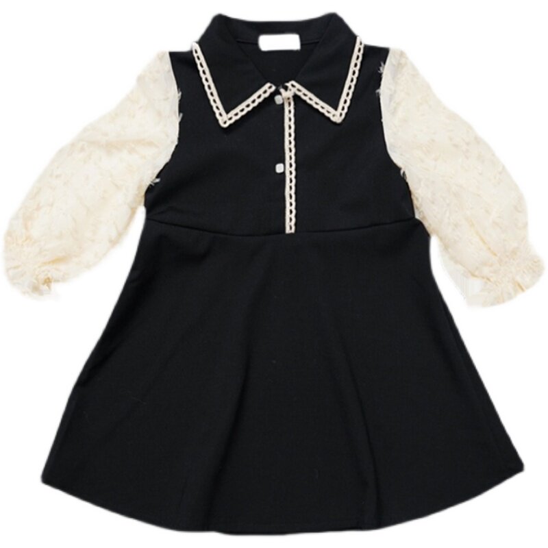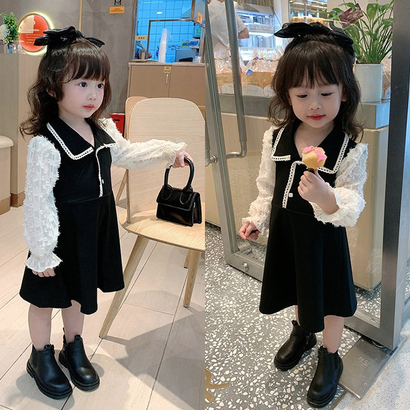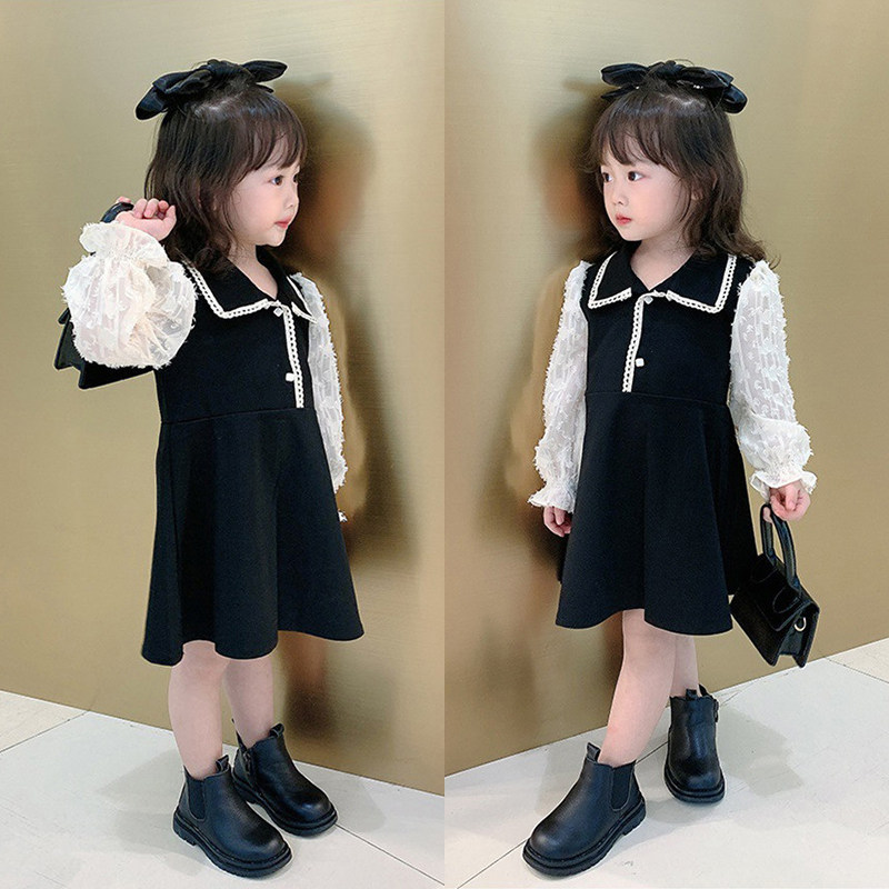Girl Spring Bubble Sleeve Skirts Young Girl Small Fragmentary Dress Children Han Edition Long Sleeve Dress