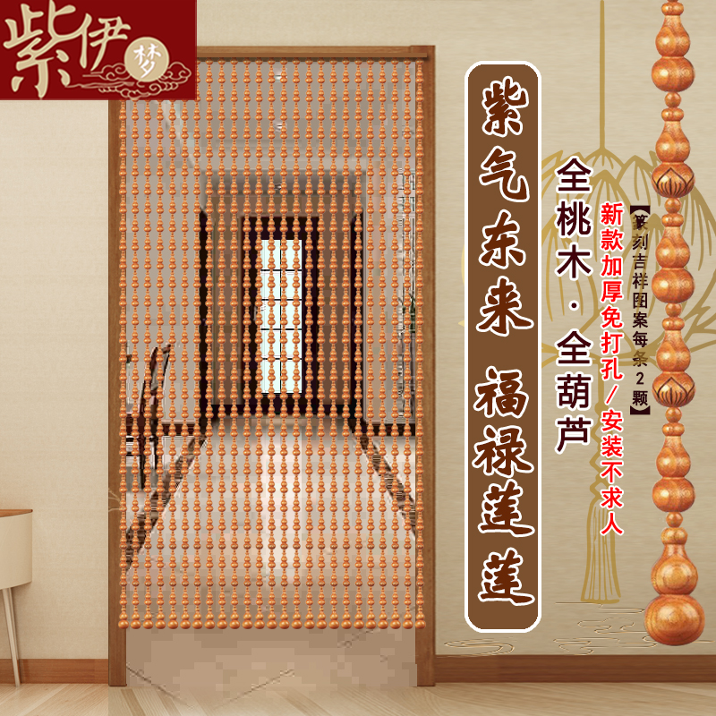 Powder room toilet to the door to the kitchen door to the bedroom twist bead curtain lotus peach wood gourd door curtain partition window