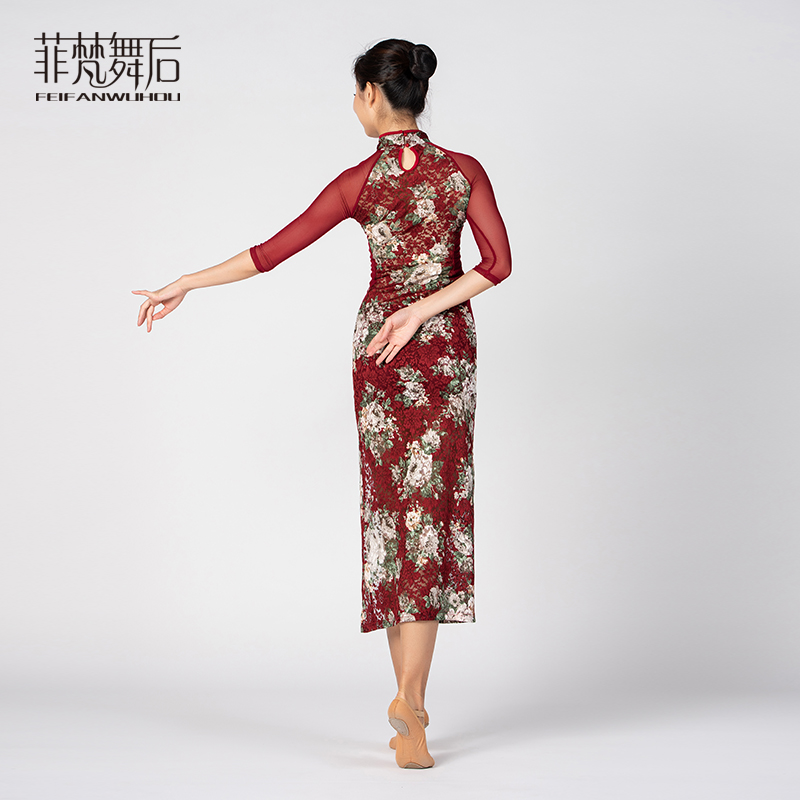 Fivan Dance Post Multi-Love Breeds Dance Suit New Elastic Lace Positive Red Conspicuy Dance Sexy Qipao