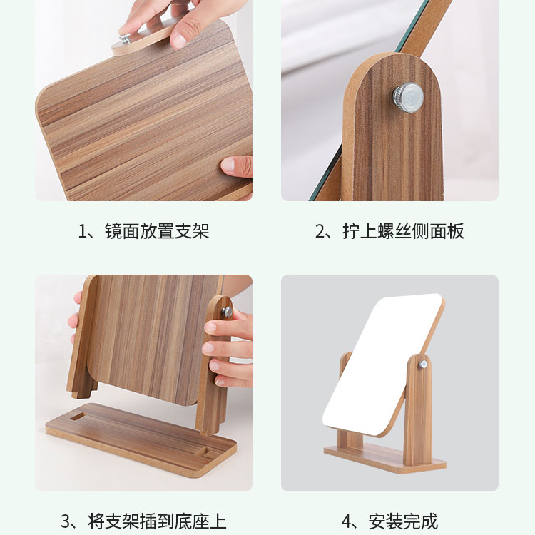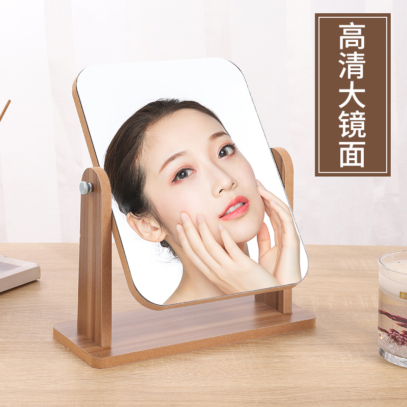 Wooden Mirror Desktop Beauty Cosmetic Mirror Household Student Bedroom Makeup Mirror can be rotated 360