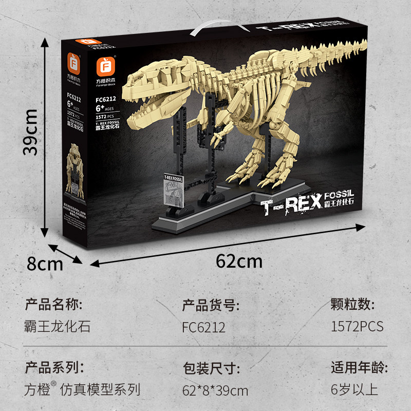 Dinosaur building blocks assembled toy giant fossil skeleton exhibition model 10-year-old children's difficult Tyrannosaurus Rex building blocks