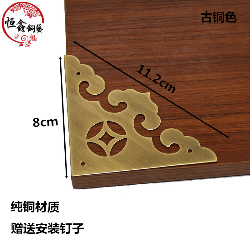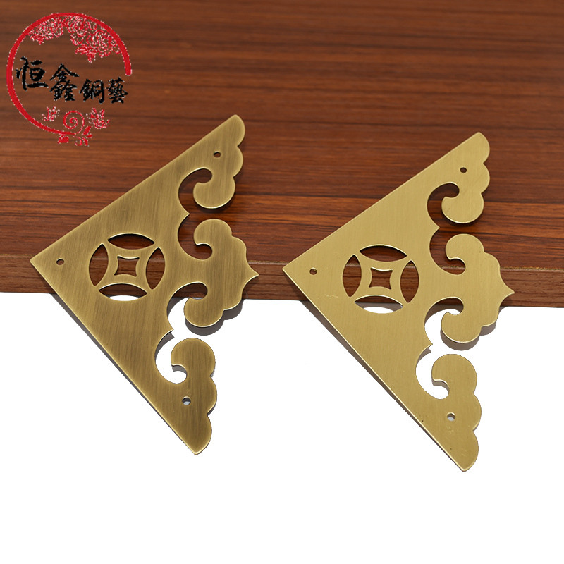 New Chinese cabinet door corner flower antique pure copper corner guard cabinet door copper clad corner corner carved corner piece copper corner flower copper accessories