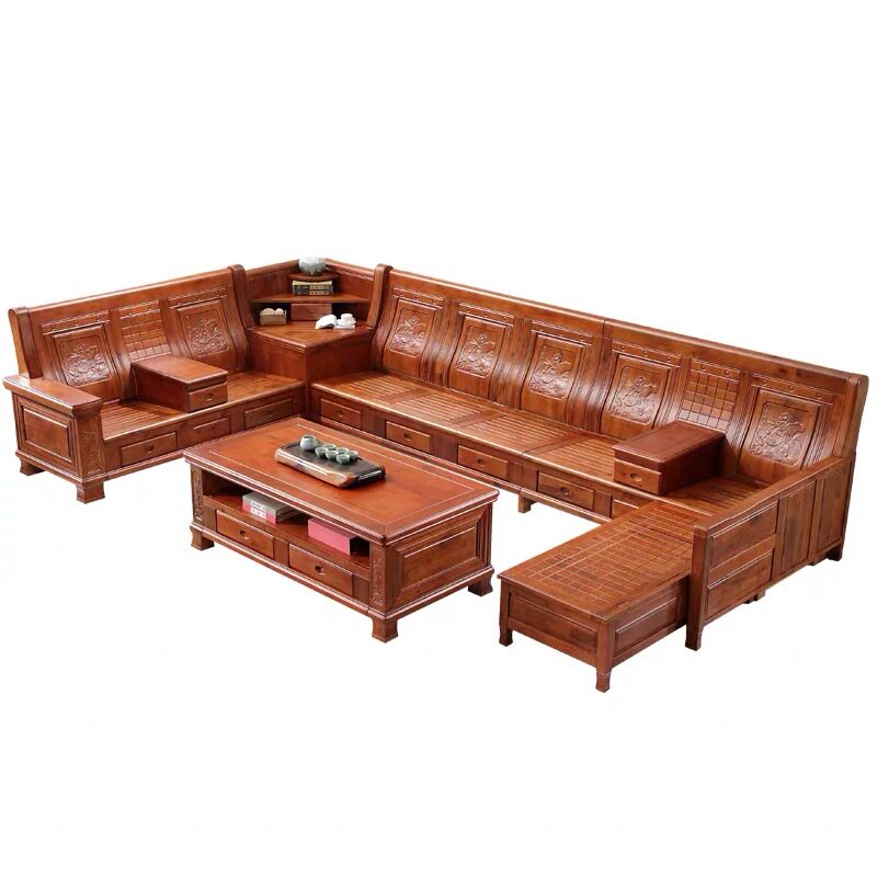 Camphor wood solid wood sofa coffee table combination classical rural living room wooden corner concubine storage economical furniture