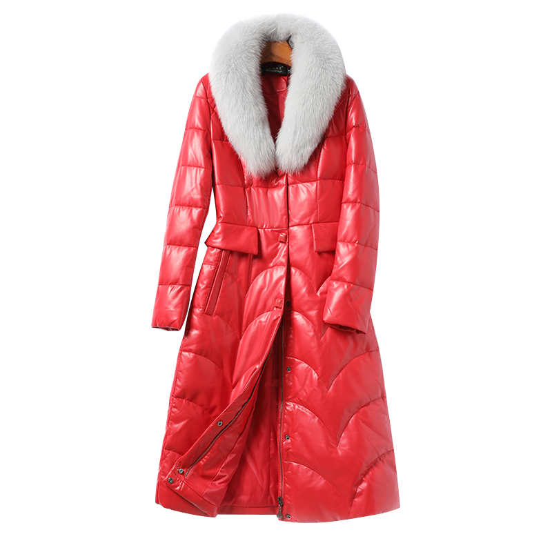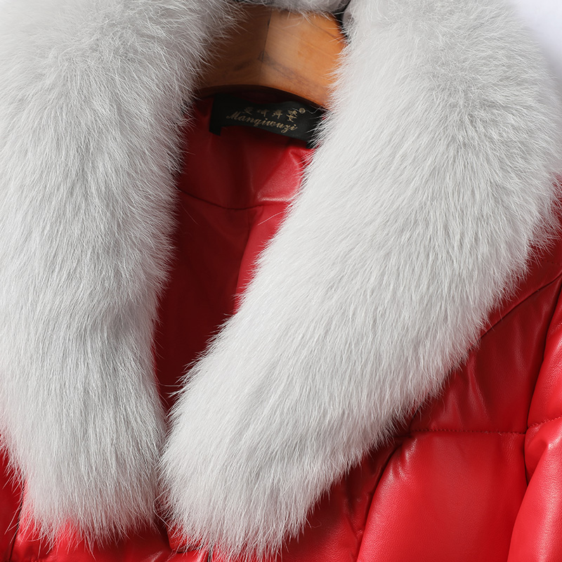 Leather coat duvet jacket woman medium long version fox fur collar workout woman coat white duck suede Anti-season sheep leather Henning genuine leather