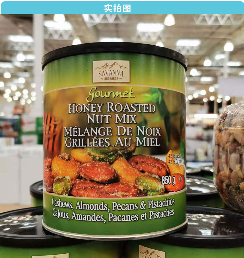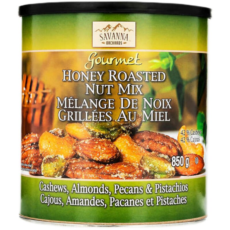 Canadian direct mail savanna roasted honey mixed nuts salty sweet dried fruit snacks green canned 850g
