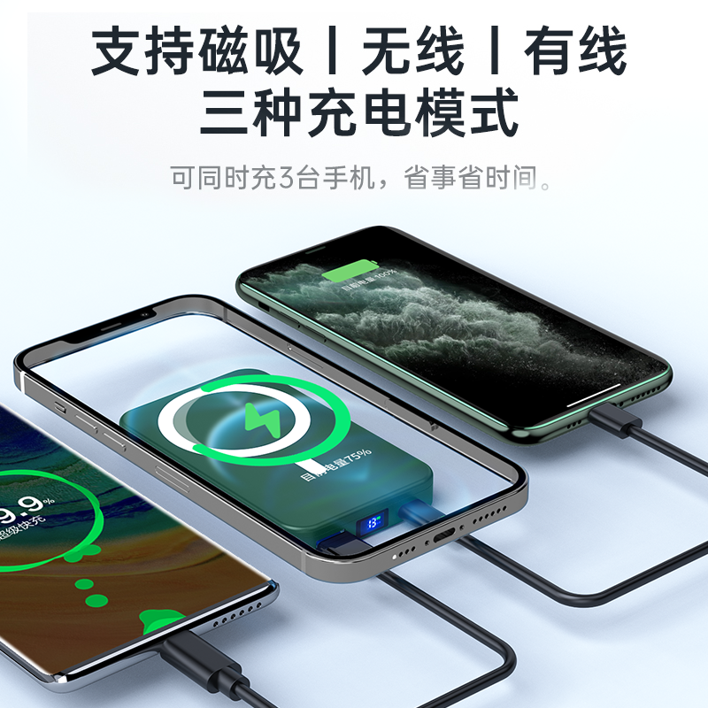 Magnetic attraction Mobile charging Magsafe Wireless Apple 13 Dedicated fast charging iphone12 supermax capacity promax light ultra-thin small portable mobile phone external action power back clip too