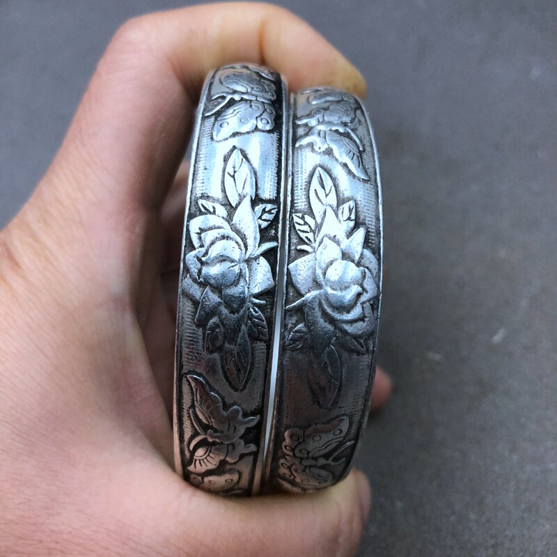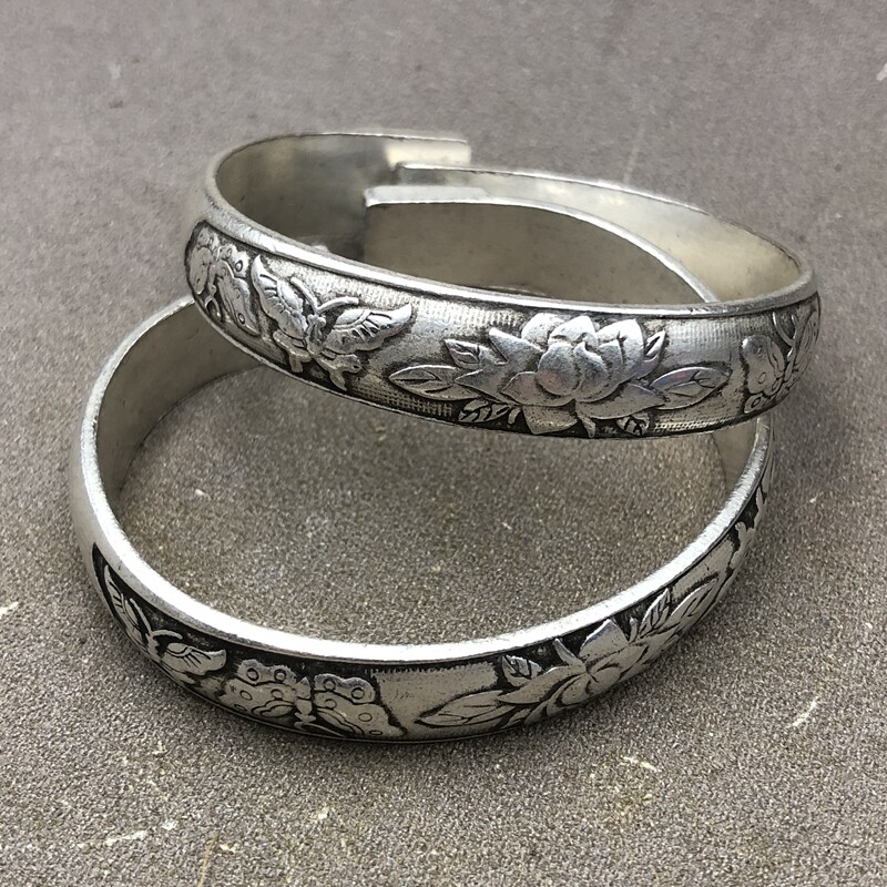 Ancient play miscellaneous bracelets a pair of butterfly lotus flowers brass Call-silver bracelets for men's women's models