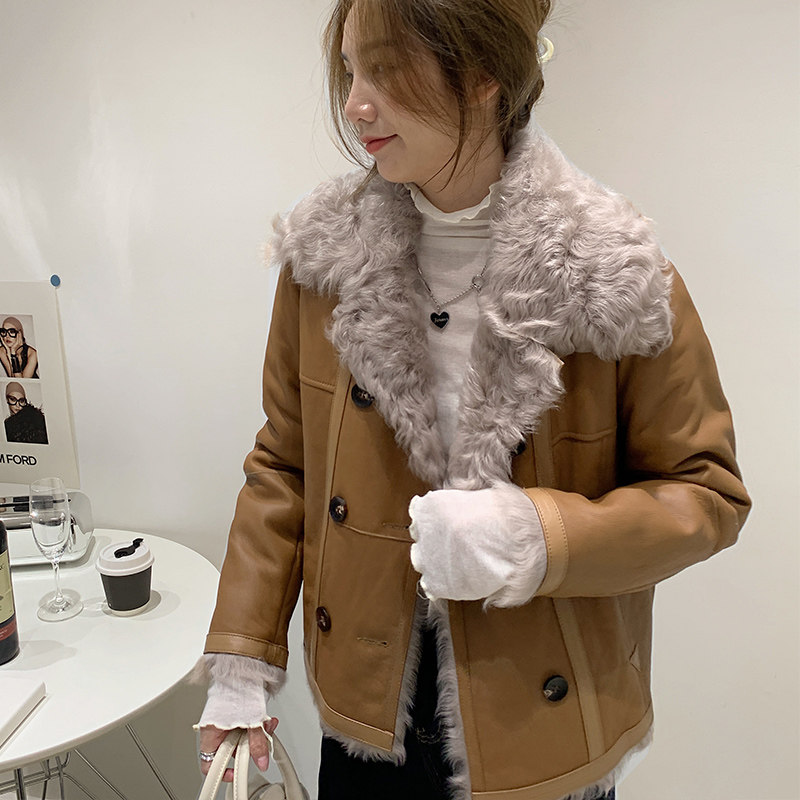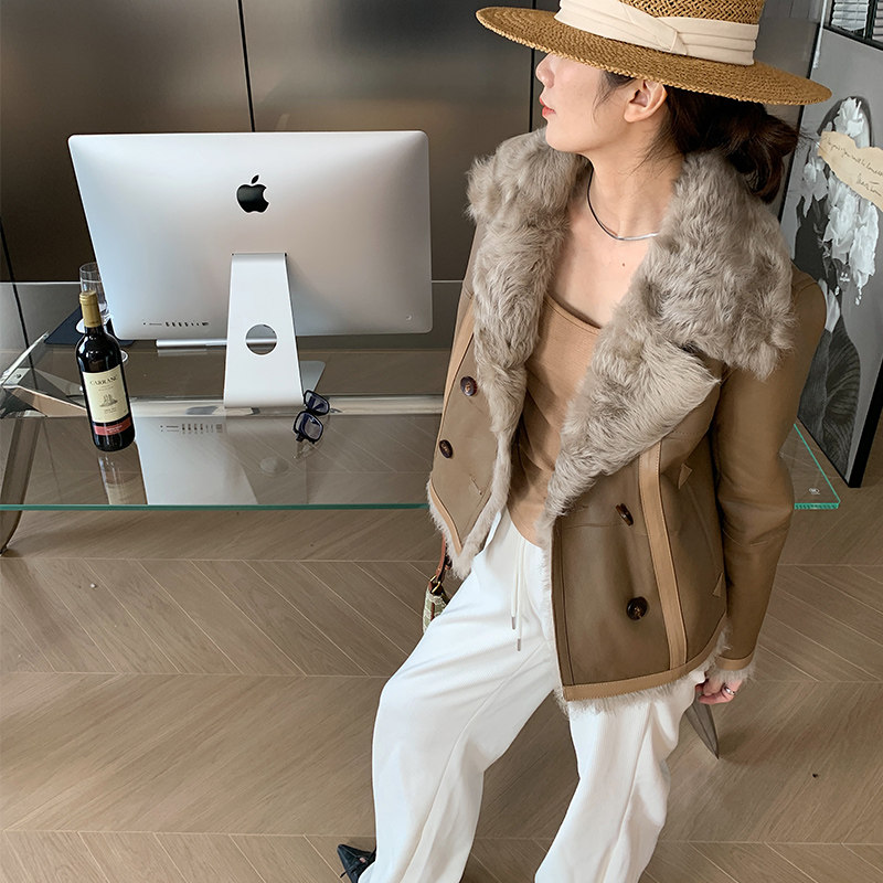 2022 winter new fur jacket women's suit big lapel double-breasted European station Xiaohu sheep fur