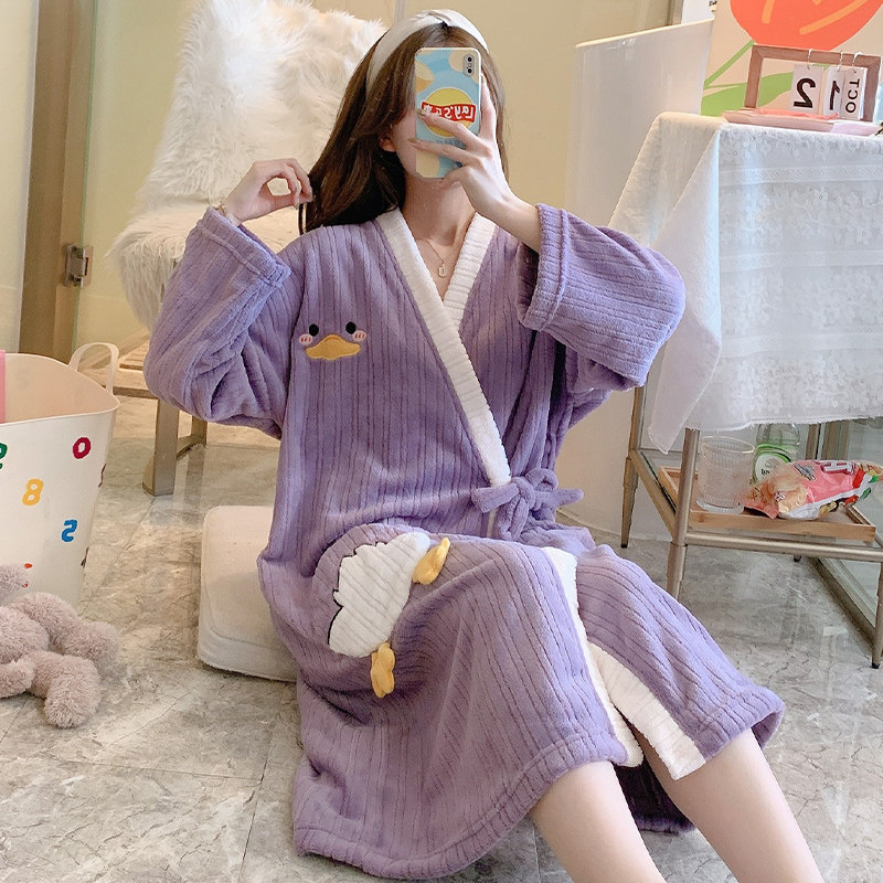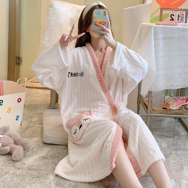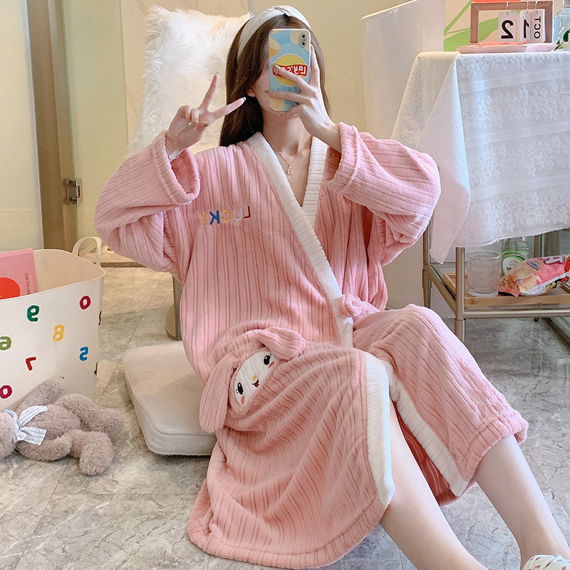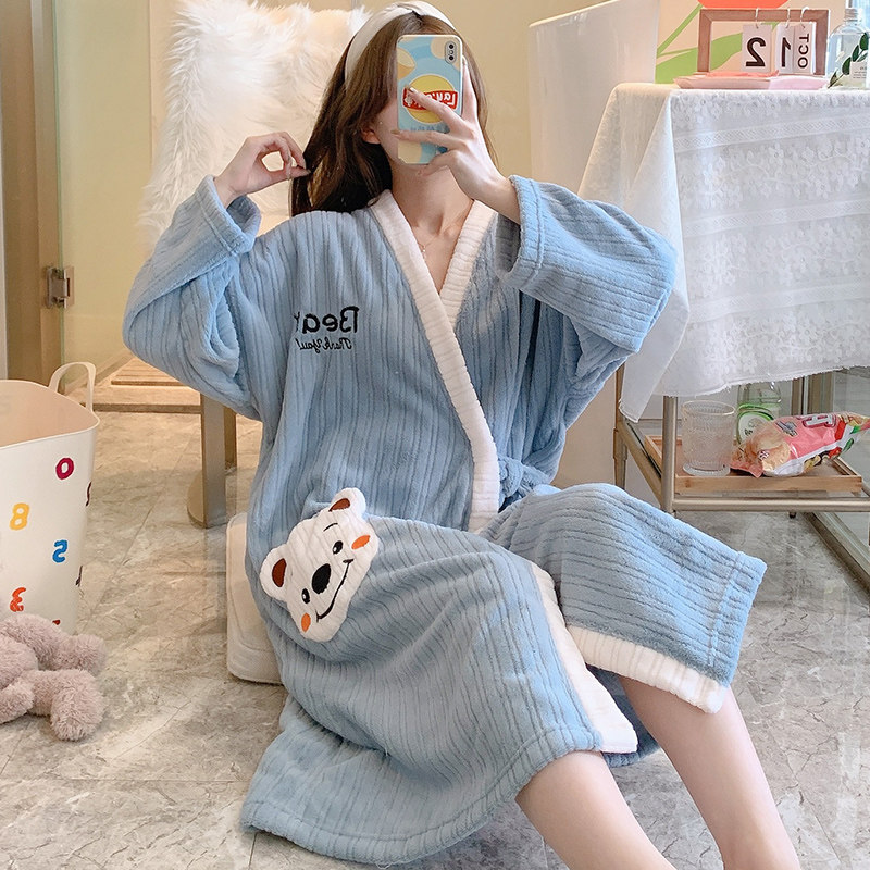2021 New robe female autumn and winter red red sleeping skirt coral tub bathrobe with thick bathrobe