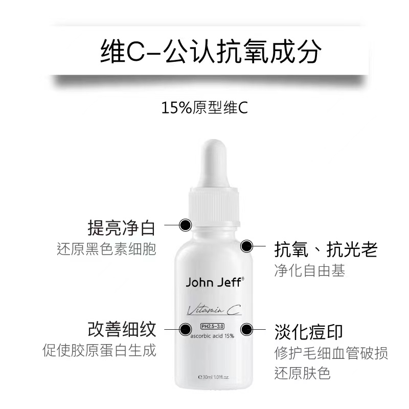 John Jeff 15 % prototype VC essence to yellow to brighten antioxidant desalination pox printing improved moisturization