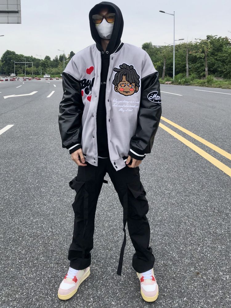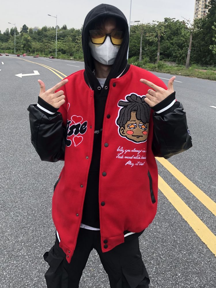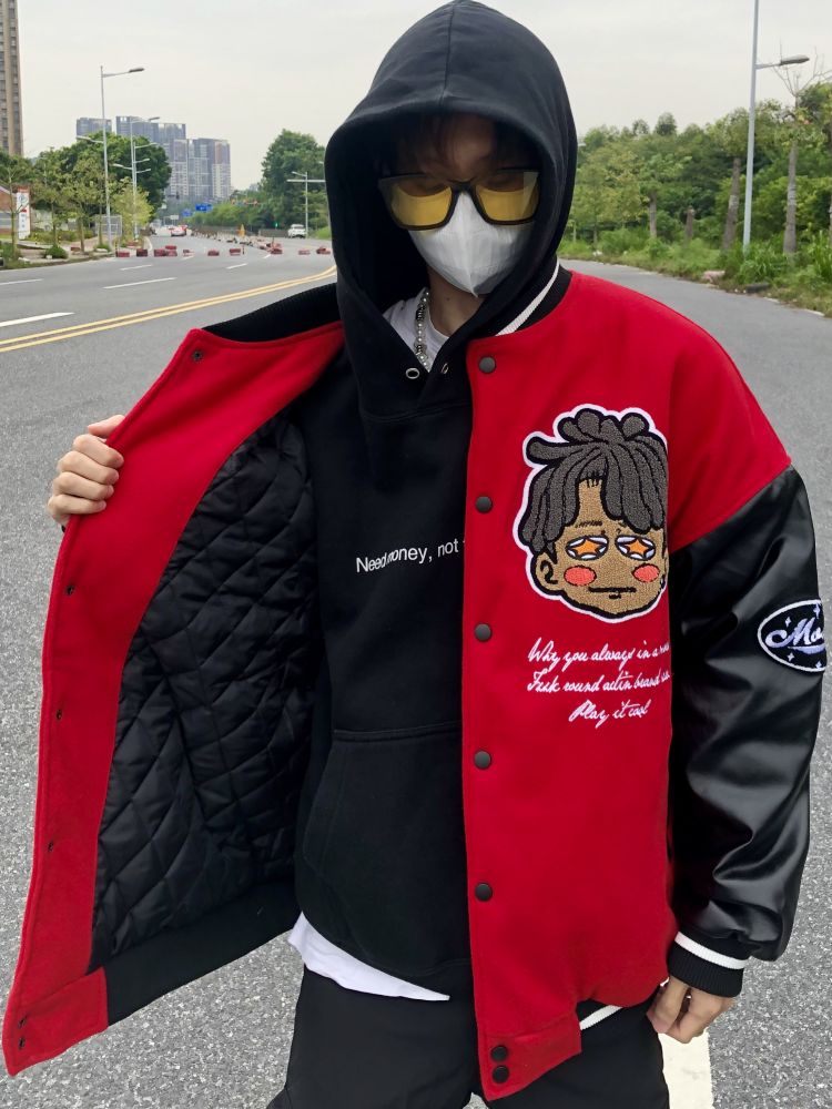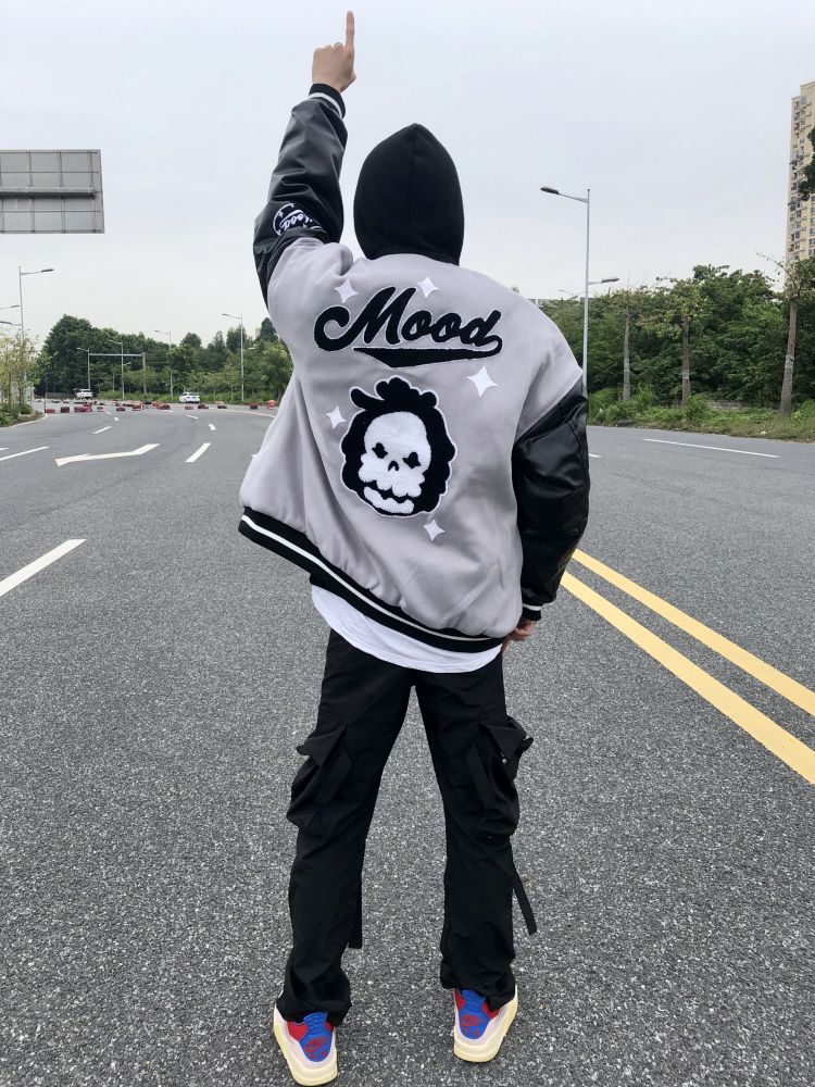 American retro cotton clothing male skull embroidery ins tide brand European and American high street hip-hop baseball uniform jacket couple jacket