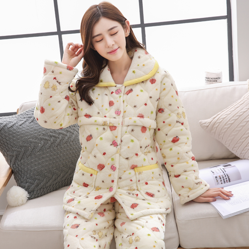Confinement clothing pure cotton autumn and winter warm three-layer quilted thickening breastfeeding breastfeeding pregnant women pajamas female December