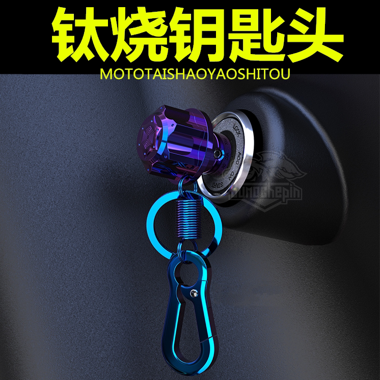 Electroplating keychain blue key head burnt titanium A2 key head burnt titanium electroplating key chain blue