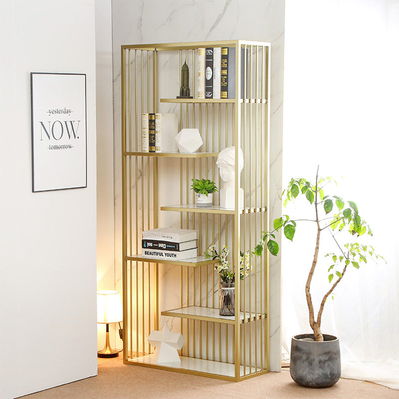 Nordic golden light luxury shelf floor-to-ceiling bookshelf multi-layer storage shelf shelf office home partition shelf