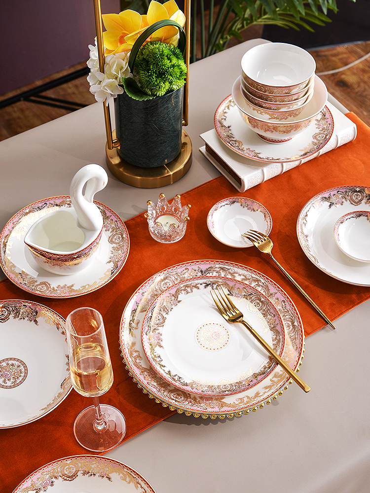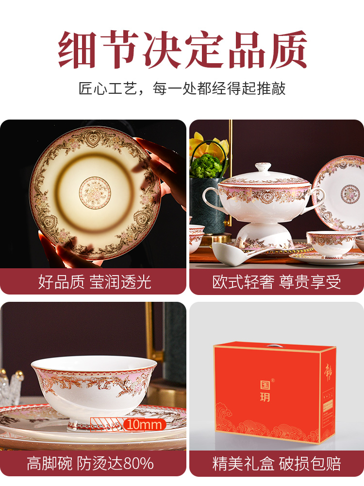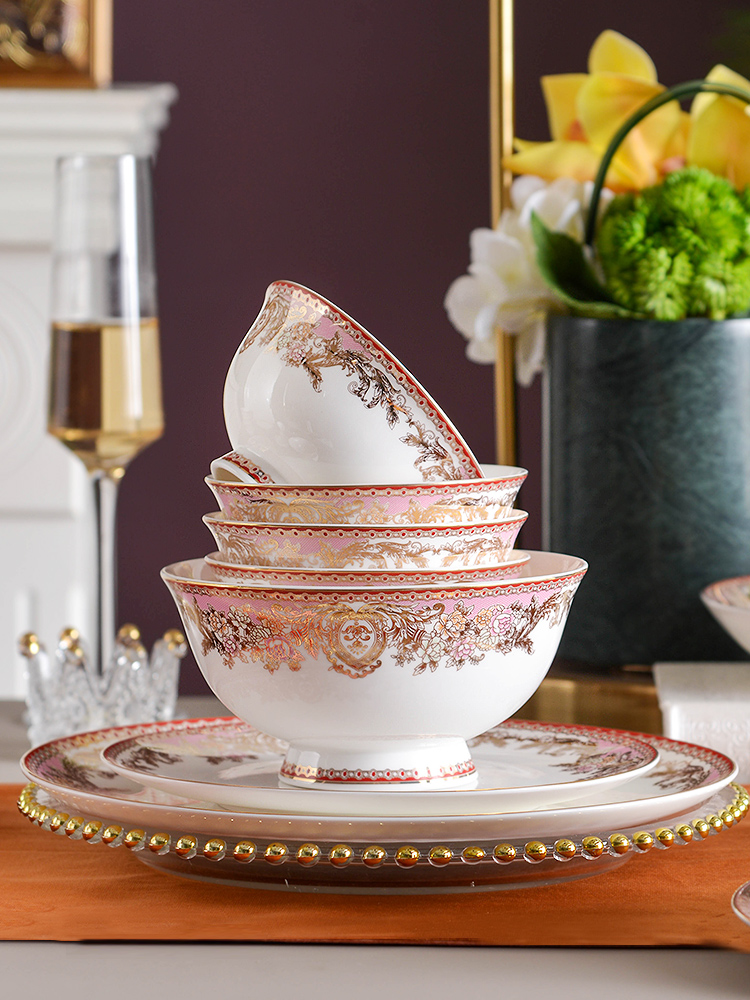 Jingdezhen bone china tableware set European dishes and chopsticks combination wedding dishes set home light luxury housewarming gifts