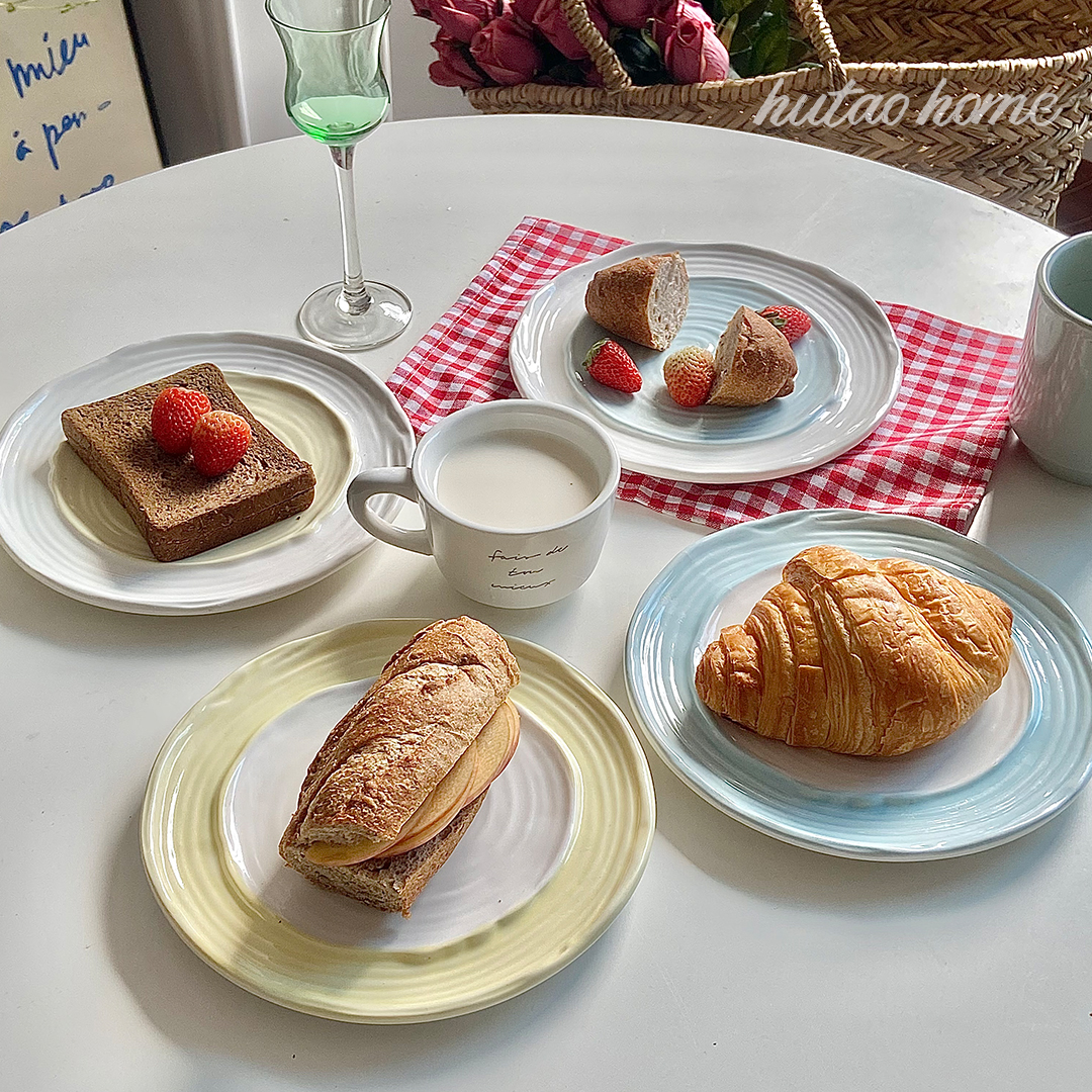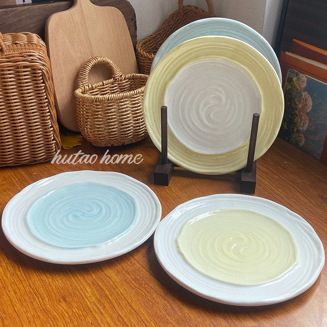 Han Style Ins Wind Irregular Hand Pinching Dinner Plate Flat Pan Breakfast Pan Glaze Lower Color Hand-painted Colorful Western Meal Pan Dessert Pan