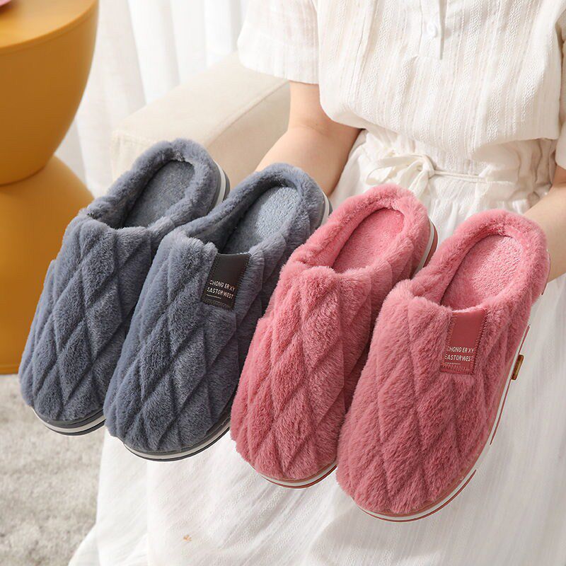 Cotton slippers female home in autumn and winter indoor non-slip thick bottom net red warm Mao Mao home cute moon couple male