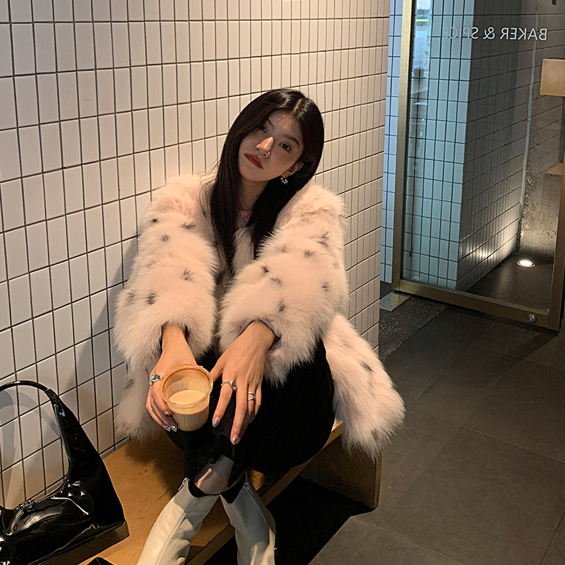 Jenny fur small milk leopard fox fur coat women's short style young style fried street Korean version 2022 new winter